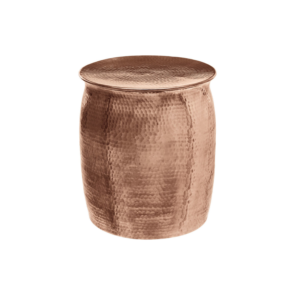 Designed in-house and handmade by skilled craftsmen in India, the Orrico rose gold hammered aluminium side table is a sleek, statement design that will be the talking point of your home. Due to it's handmade nature, each table is unique. It's finished with hundreds of tiny hammer marks on its surface, which catch and reflect both artificial and natural light creating a striking iridescent effect. Surprisingly lightweight, it will bring originality to your home and create a strong focal point as either a side table or bedside table. Part of the Orrico collection, it is also available in different sizes and finishes.