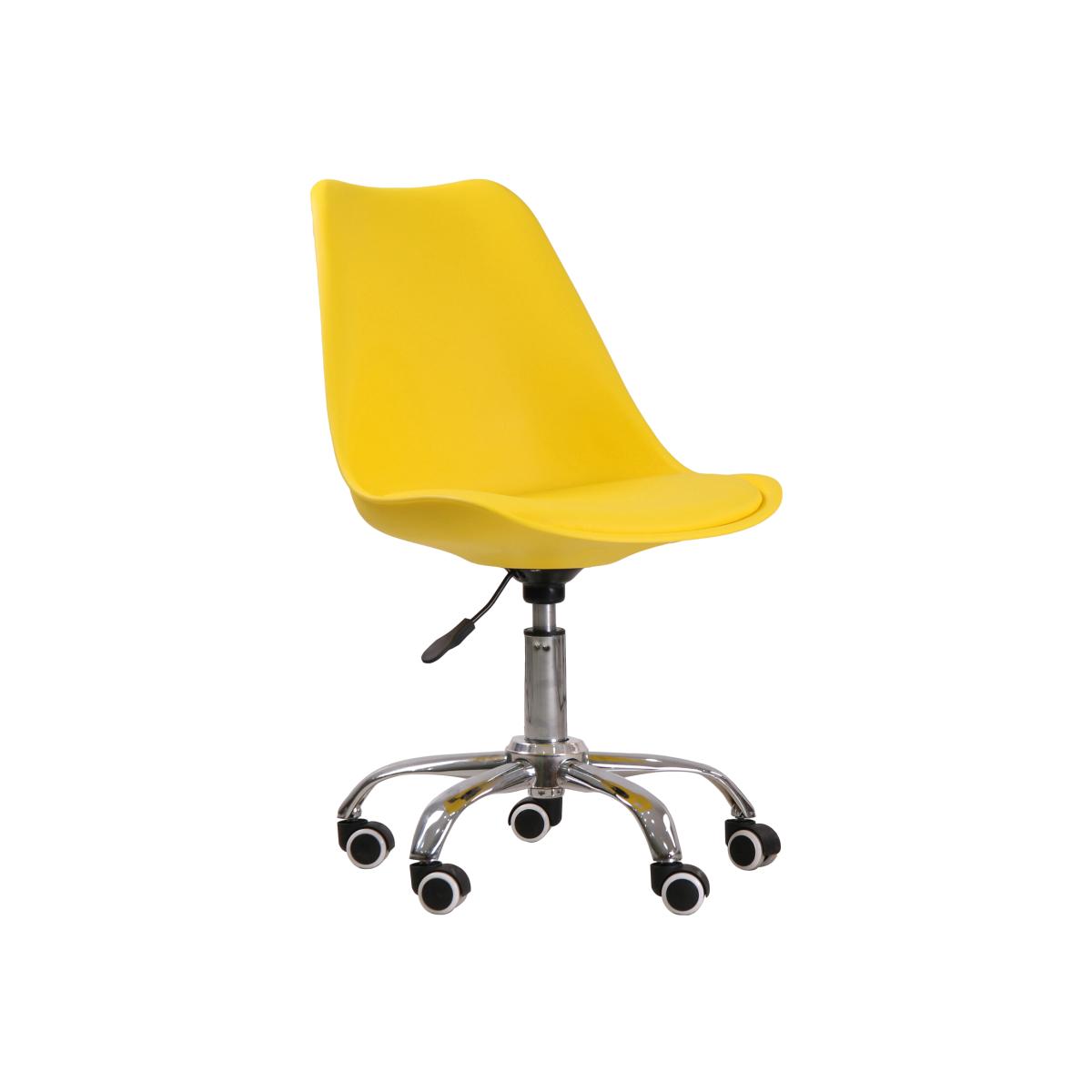 The Orsen Swivel Office Chair is a modern home office chair in a vibrant style and a comfortable design. Finished in a bold colour to suit any decor, the moulded chair will provide hours of comfort, and the upholstered seat area gives added support. The chair is finished perfectly with five chrome legs with black castors and a height adjustment handle, ensuring you can move freely around your work space in comfort and style.