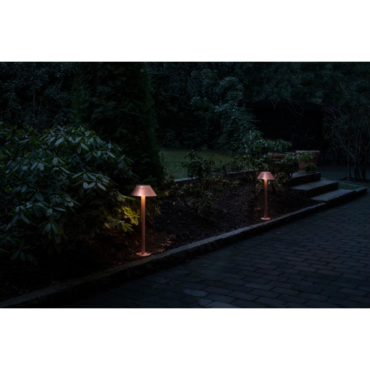 I love this outdoor lamp for its sleek, minimal design combined with the warm copper finish, which brings a touch of sophistication to any exterior space. It works particularly well in contemporary or Scandinavian garden layouts, adding an inviting glow without overpowering the surroundings. Practical styling tips include pairing it with natural materials like timber or stone for a cohesive look, placing it along pathways or near seating areas to create ambient lighting during evenings. Its low profile makes it versatile-think about positioning it to highlight architectural features or to define outdoor zones in a functional yet stylish way.