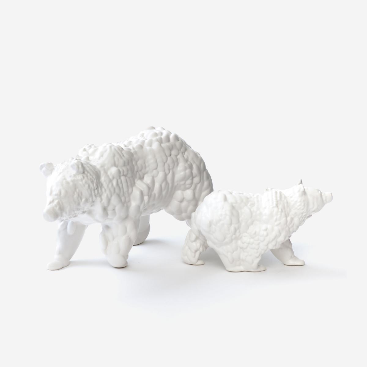 A true allrounder, French designer Benjamin Graindorge reinterprets the decorative arts, materials and traditional skills. With Orso, he revisits the tradition of animal sculpture which was very popular during the Second Empire. Combining craftsmanship and cutting-edge technology, this ceramic bear figurine is modelled in 3. D. It’s handcrafted using a mould sculpted by ultra-sophisticated digitally controlled tools. The embossed, rough surface expresses an organic sensitivity. This irregular, unusual texture exudes a strangeness which challenges our emotions and evokes poetic sensations. Benjamin Graindorge explains: “My job is not to invent materials or skills, but to ensure they are viewed differently. ” Benjamin Graindorge won the Audi talents design awards in 2008 and the ELLE young designer of the year international decoration award in 2012.