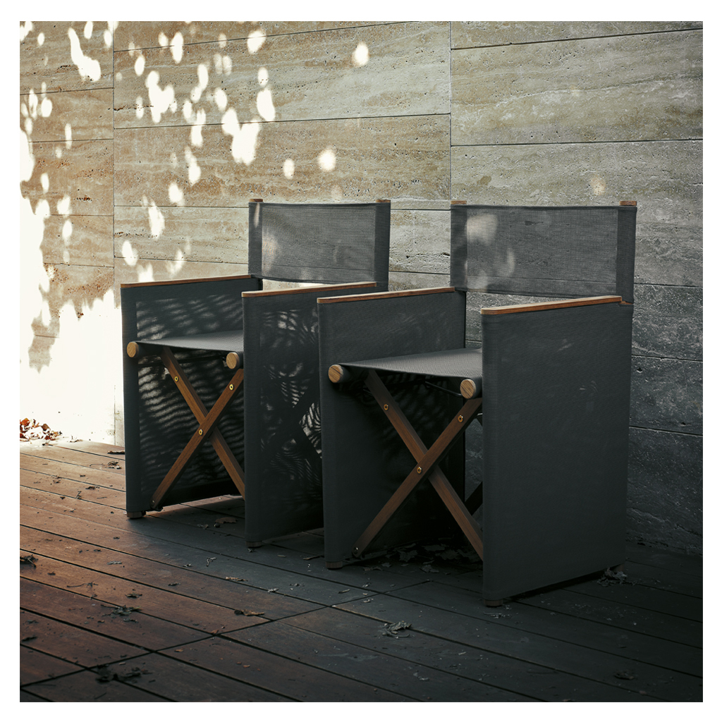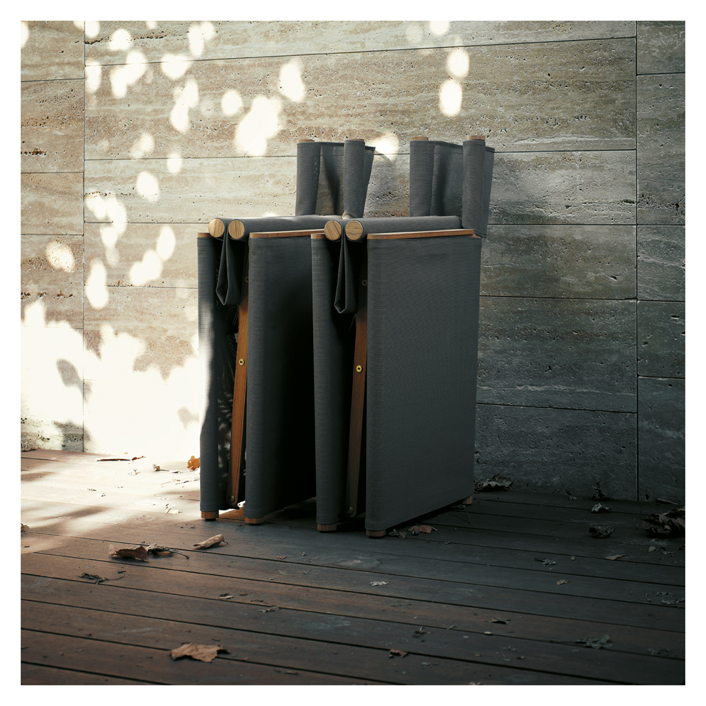 Exclusive to The Conran Shop, the refined Orson 001 Director Chair is a perfect synthesis of classic materials and modern design. A contemporary reinterpretation of the instantly recognisable director's chair, the Orson 001 Director Chair was designed by Gordon Guillaumier, crafted by outdoor expert RODA, and follows traditional garden furniture design in its construction from premium teak wood. Perfect for the outdoors, whether a shady terrace or sun-soaked poolside, the Orson 001 Director Chair is covered with quick-drying, UV-resistant grey Canatex fabric, crafted in a convenient folding design that remains standing even when contracted, perfect for storage even when short of space. Award-winning designer Gordon Guillaumier, one of RODA's acclaimed art directors, is inspired by his five senses to create his innovative designs. Aspiring to capture the feelings that enhance his mood, Guillaumier reimagines his sensorial inputs as striking, contemporary design pieces.