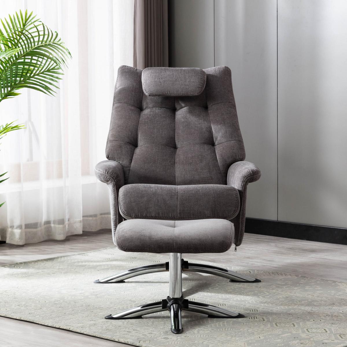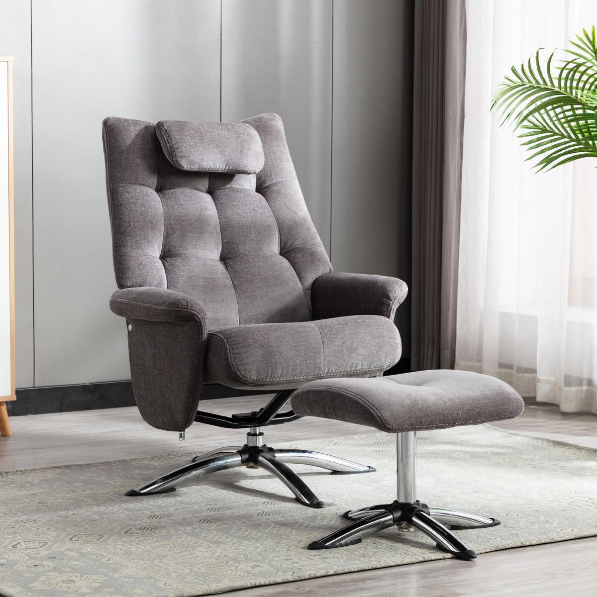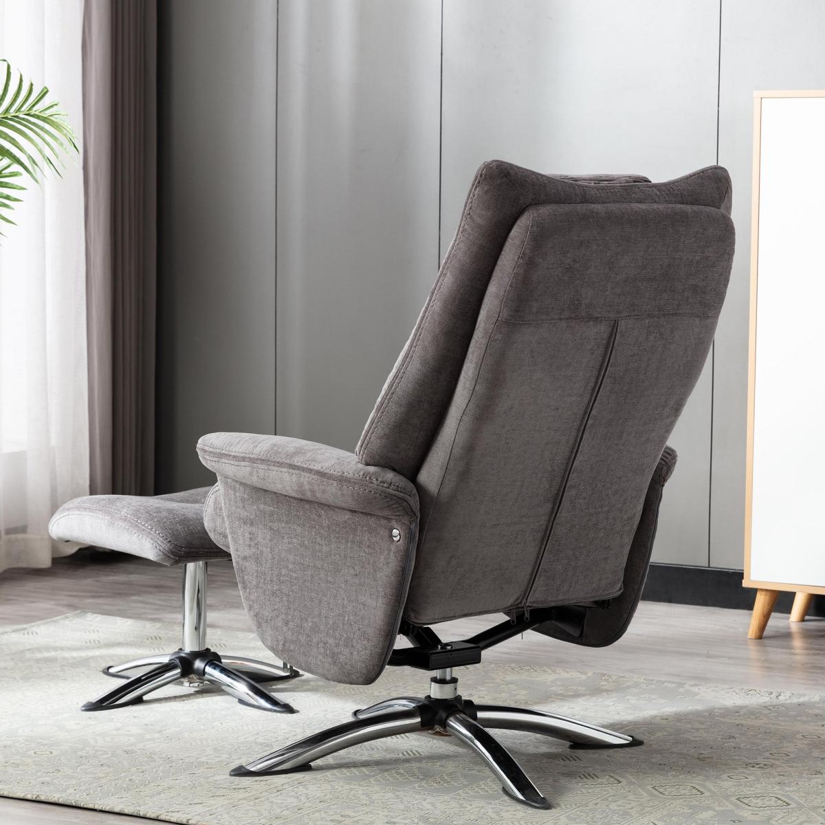 Orson Chenille Reclining Swivel Chair with Footstool Grey