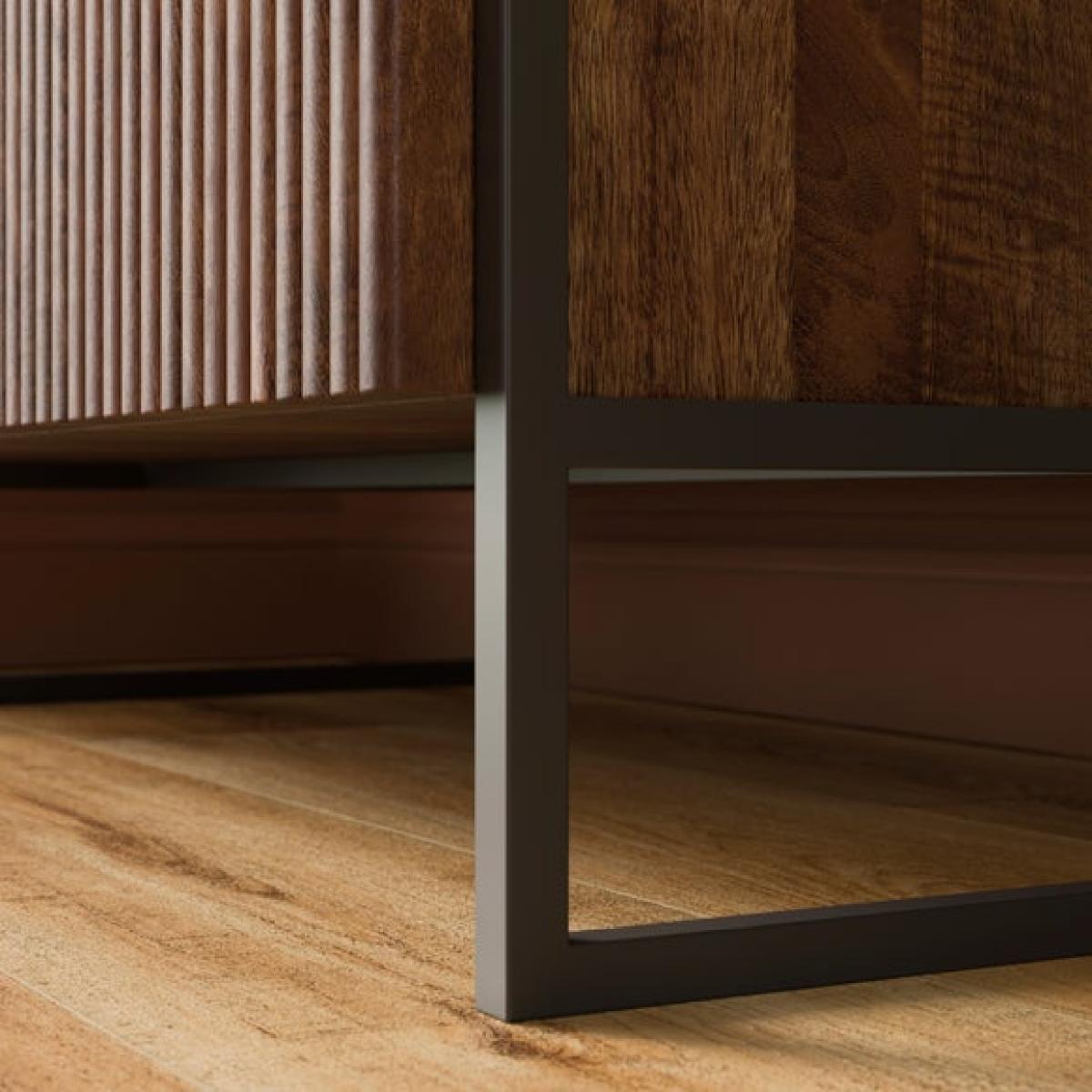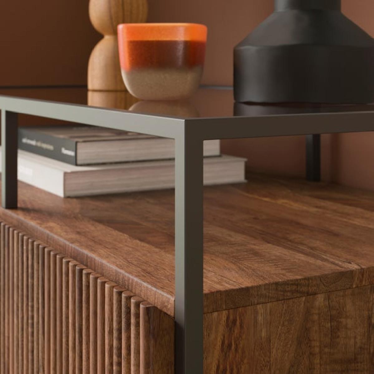 * Mango wood frame * Glass table top * Ribbed front design * No assembly required The Orta sideboard is a compact yet stylish storage solution, crafted from solid mango wood and finished with a sleek glass top. Its ribbed front design adds a touch of texture and sophistication, making it a standout piece in any room. Ideal for smaller spaces, it offers practical storage while maintaining a clean and modern aesthetic that complements both contemporary and transitional interiors.