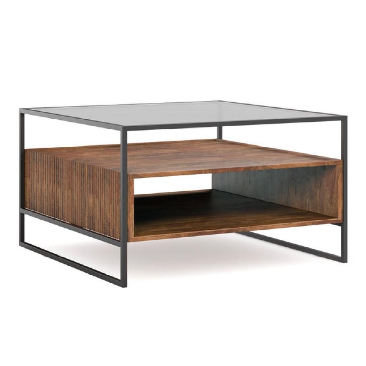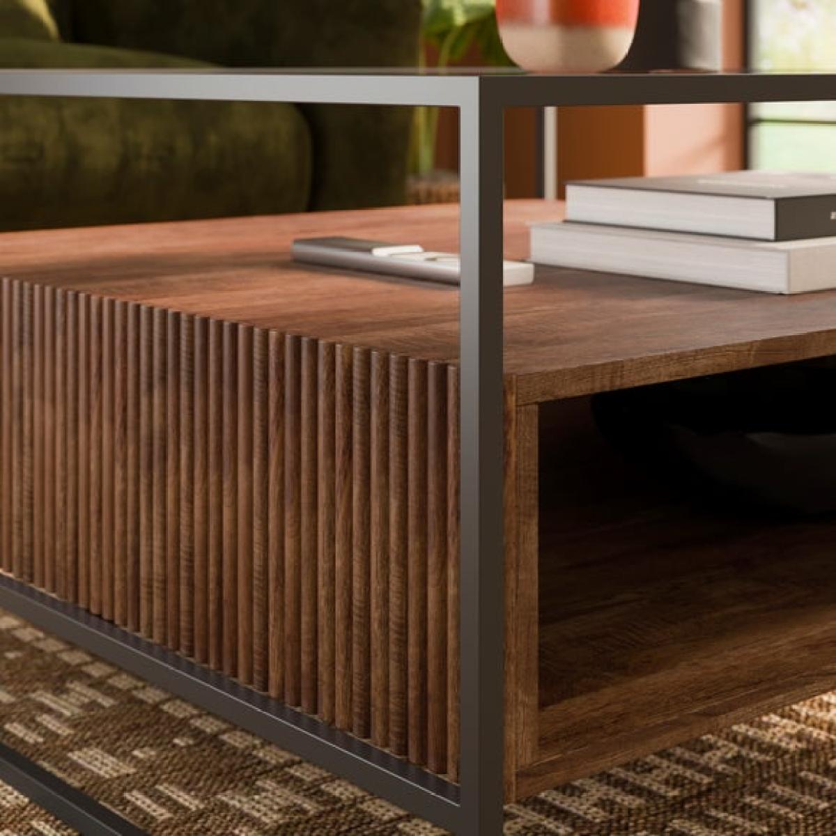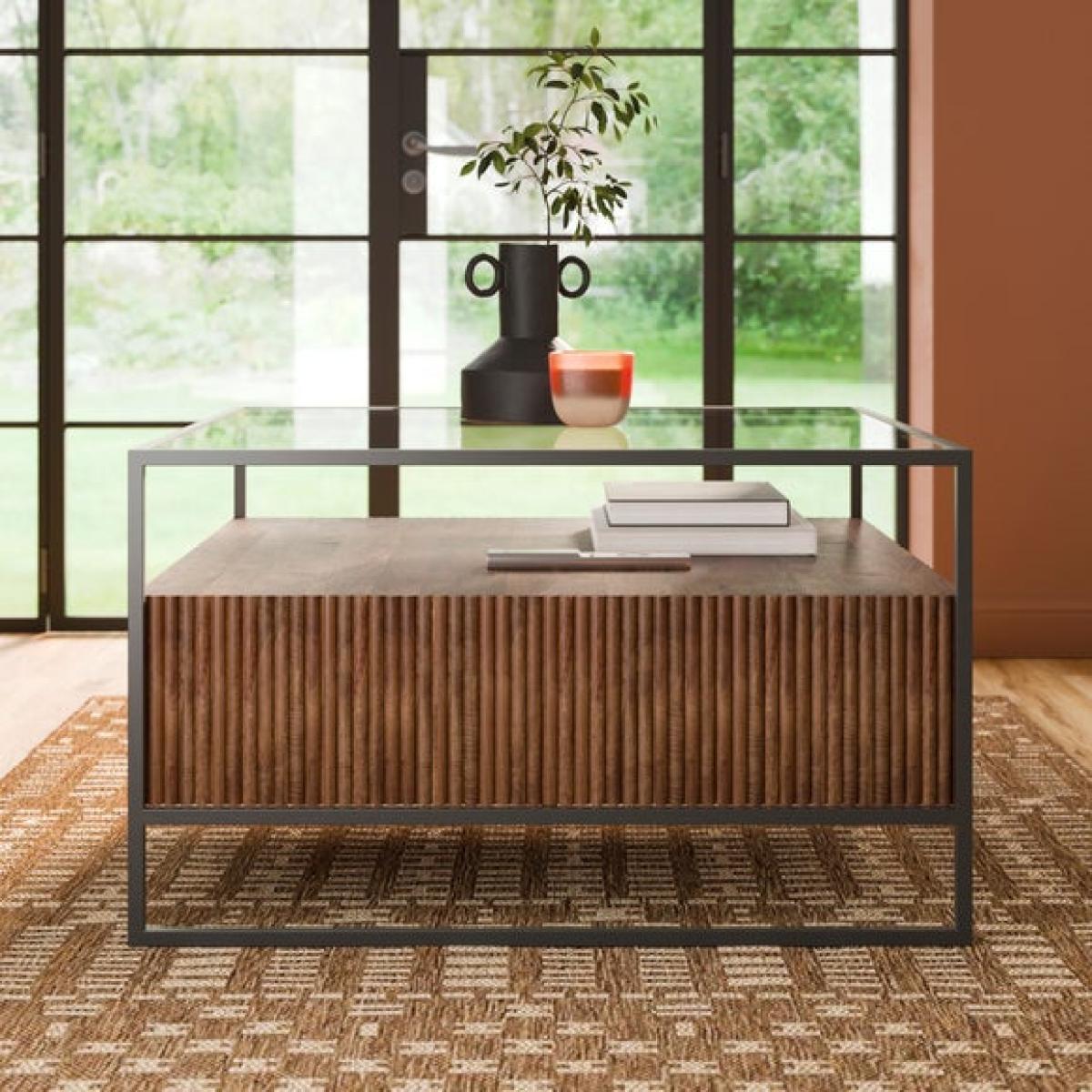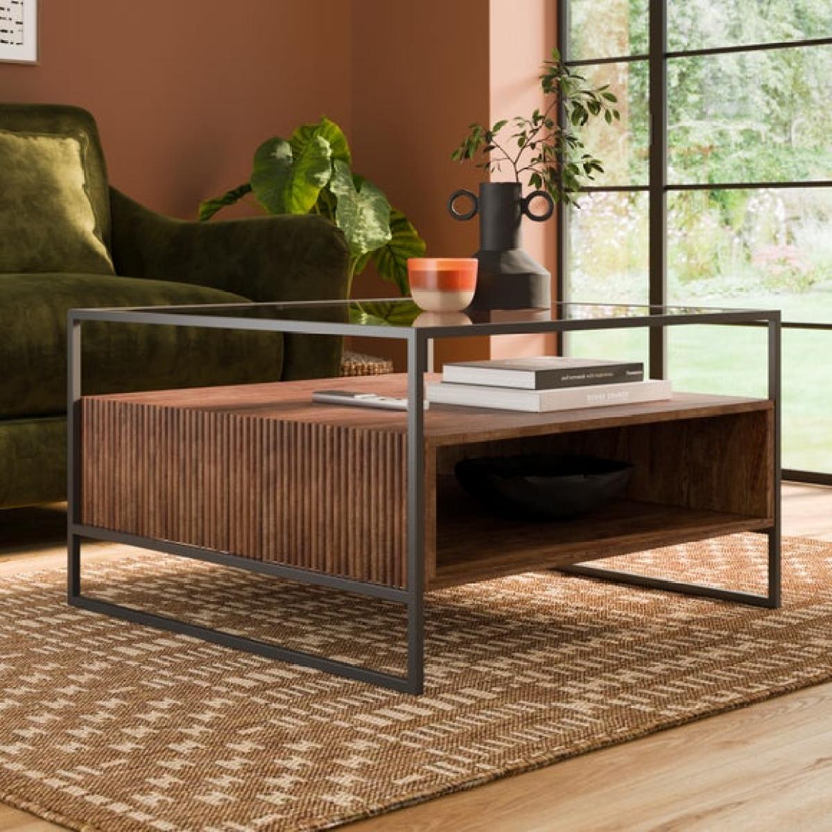 * Mango wood frame * Glass table top * Ribbed front design * No assembly required The Orta coffee table is a versatile centrepiece for modern living spaces. Constructed from mango wood with ribbed side detailing, it features a glass top that adds a light, contemporary touch. An additional lower shelf offers extra storage or display space, enhancing both its practicality and visual appeal.