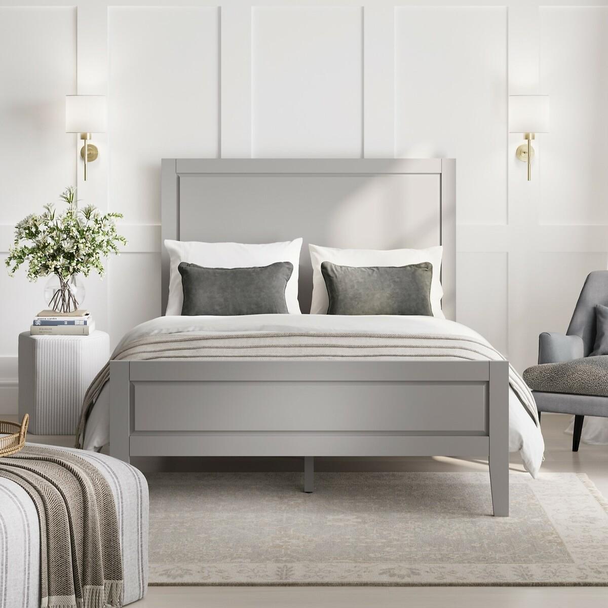 The Orton bed showcases a classic shaker-style design, emphasising clean lines and understated elegance. Complete with simple, unadorned panels and gently tapered legs, its timless look will ensure it integrates seamlessly in a wide range of interior styles. Crafted from solid pine wood, it promises lasting durability and support for years to come. Product Details • Solid pine wood bed frame • Shaker design • Tapered wood legs • Satin finish • Sprung slatted base • Weight capacity 250KG • Full assembly required • Clean with a damp cloth or duster. Product Composition - Solid Pine. Product Dimensions • Double 197 cm x 143 cm x 125 cm , Weight - 40 KG • King 207 cm x 158 cm x 125 cm , Weight - 47 KG • Clearance to floor - 19 cm. Packaged Dimensions. Double: • Parcel 1 Packaged Dimensions - 200 cm x 133 cm x 11 cm, Weight 34.8 KG • Parcel 2 Packaged Dimensions - 151 cm x 24 cm x 11 cm, Weight 13.1 KGKing: • Parcel 1 Packaged Dimensions - 200 cm x 133 cm x 11 cm, Weight 40.1 KG • Parcel 2 Packaged Dimensions - 151 cm x 24 cm x 11 cm, Weight 14.6 KGThis product will be dispatched by one of our trusted suppliers. You’ll be contacted by their selected courier about your delivery. Please note: this product cannot be delivered to all Offshore Islands, Northern Ireland or Republic of Ireland.