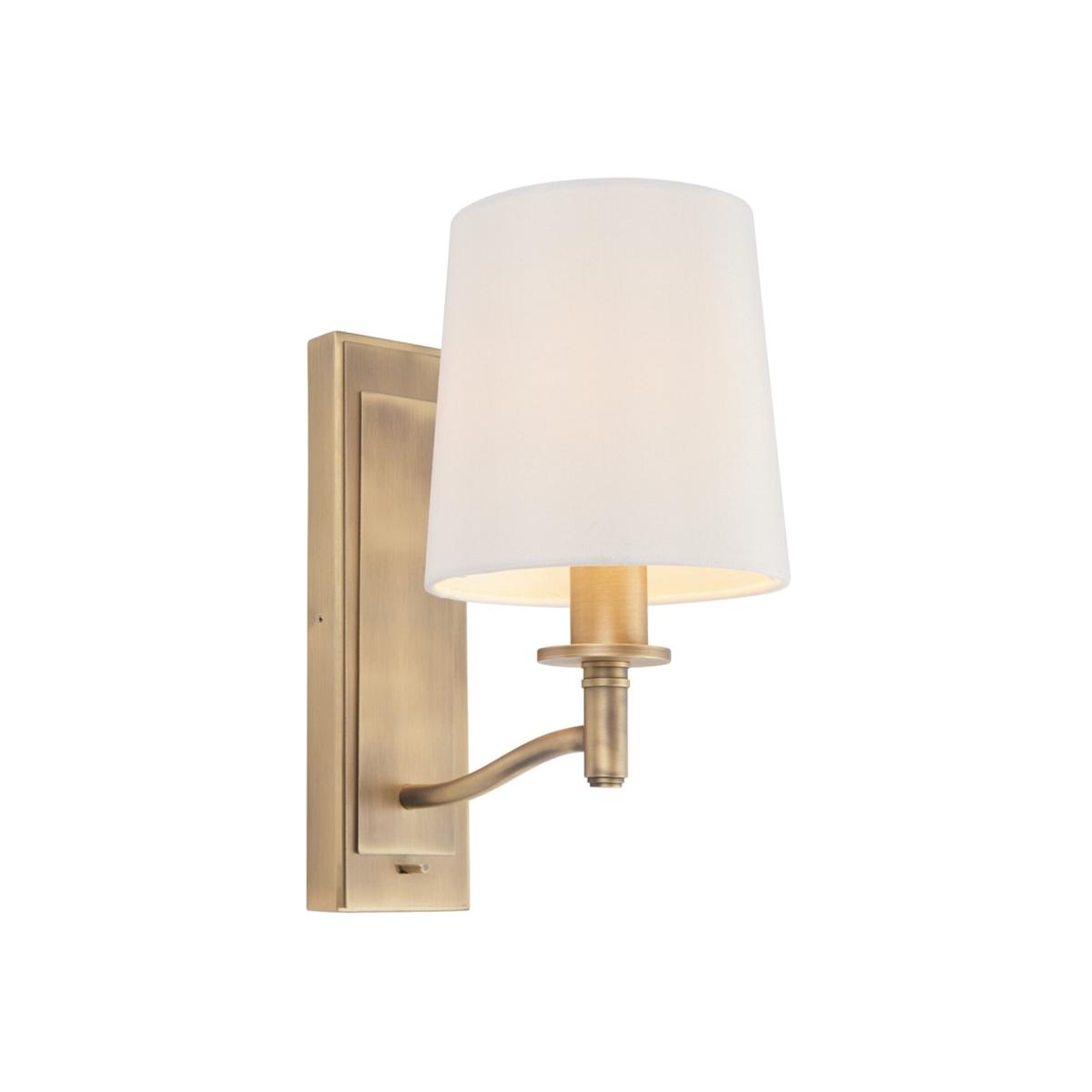 Ortona 1 Light Wall Matt Antique Brass Vintage White Faux Silk E14 - Matt Antique Brass Plate