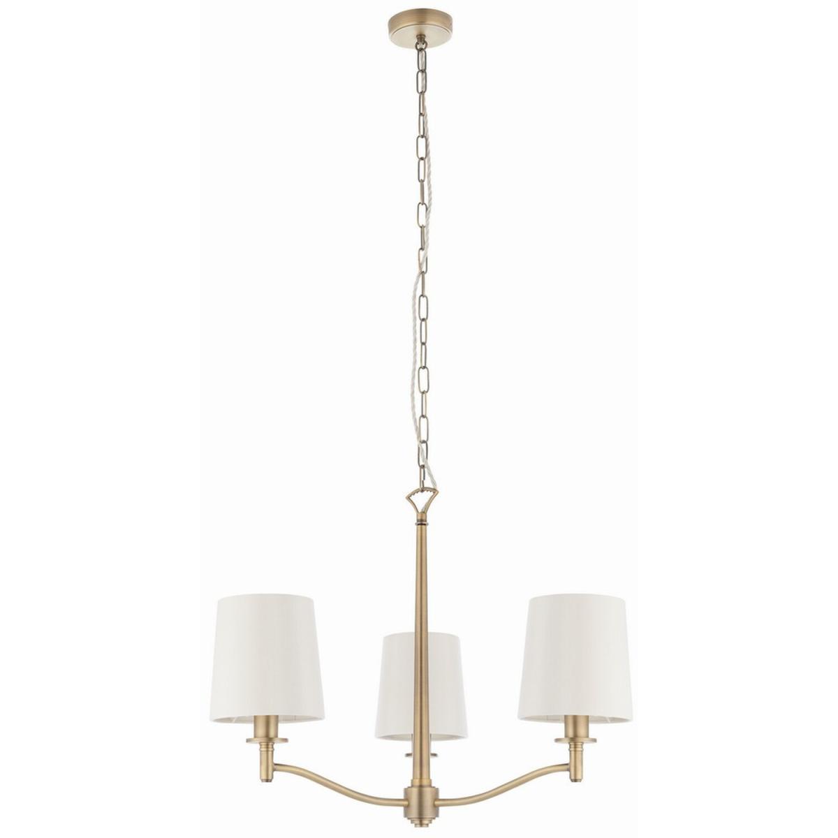 Ortona 3 Light Multi Arm Pendant Matt Antique Brass, Vintage White Faux Silk, - Matt Antique Brass Plate