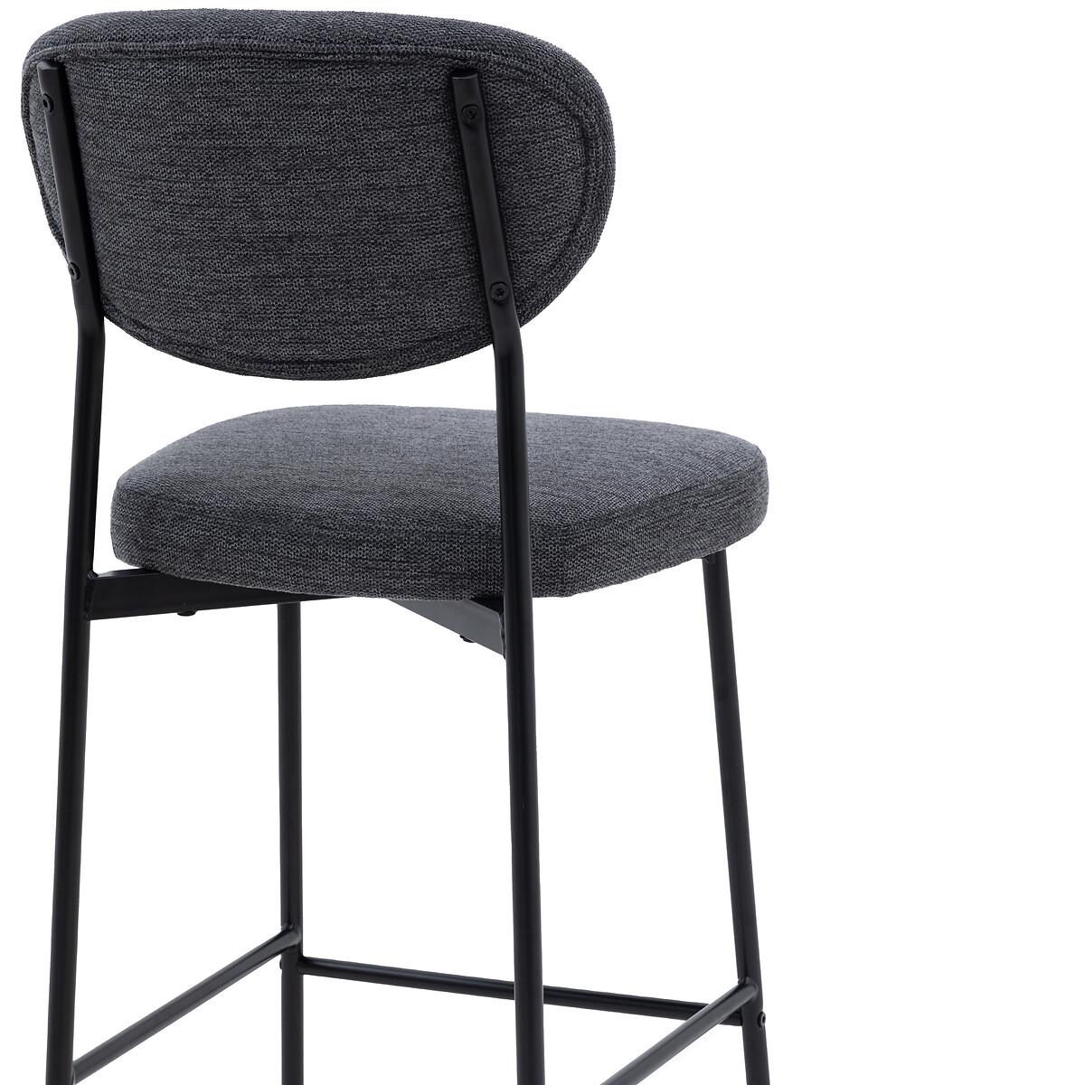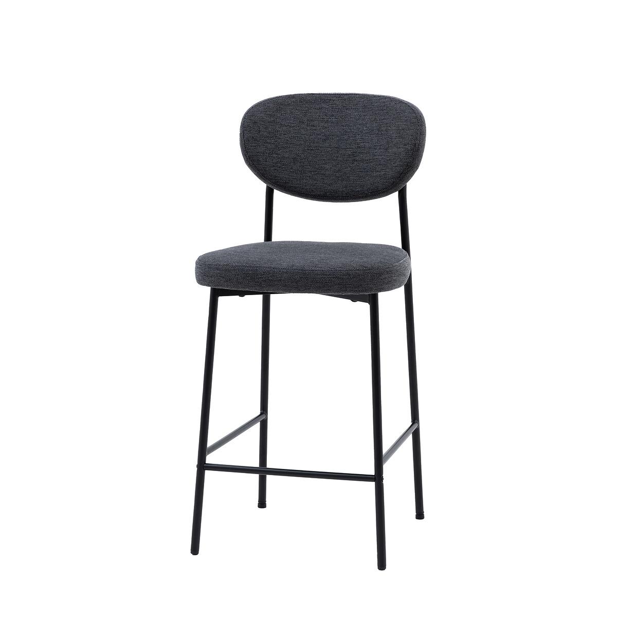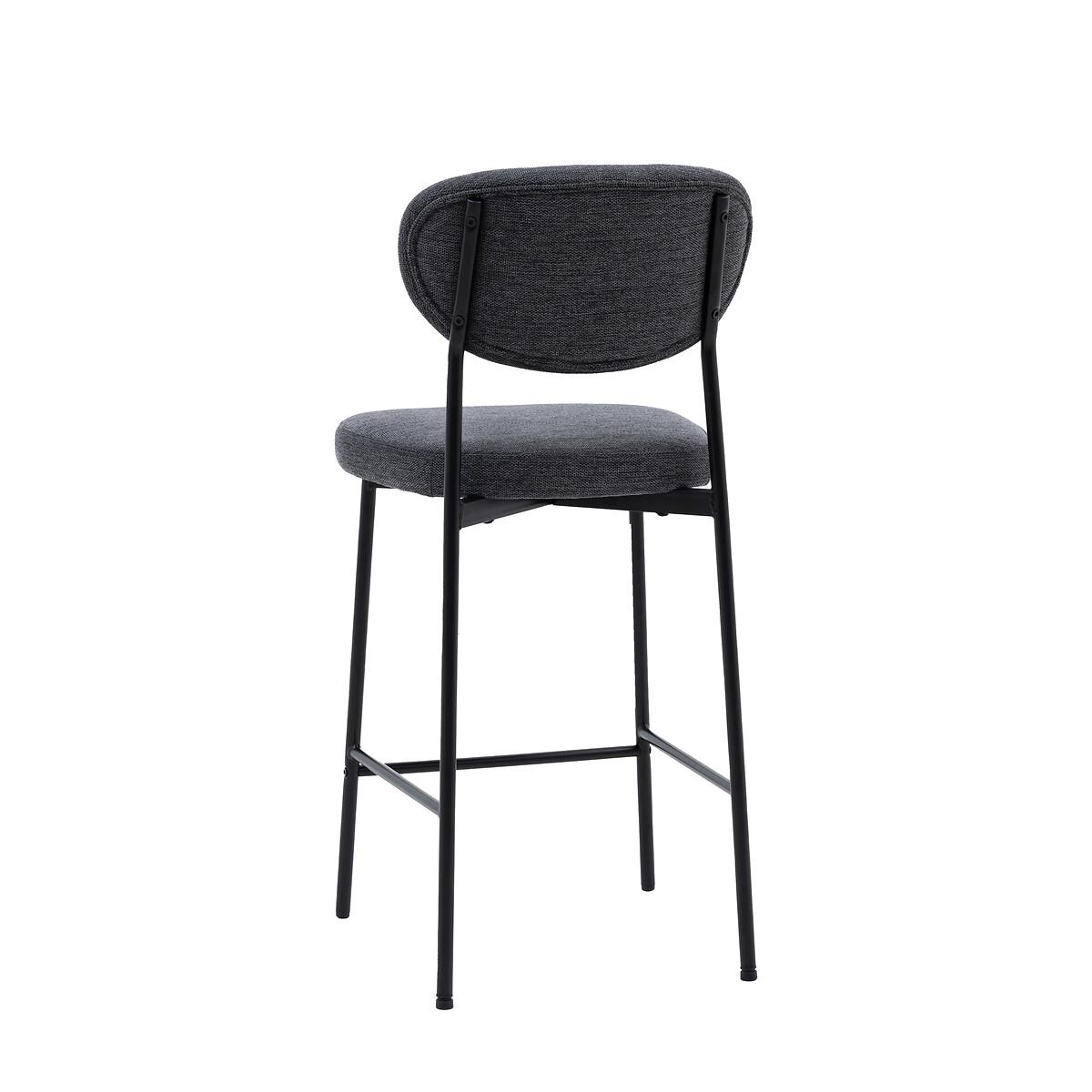 This bar stool chair is a stylish and comfortable addition to any bar counter or kitchen island. Its unique oval-shaped backrest and sleek black metal legs create a modern and eye-catching look. The soft, upholstered seat provides comfort and style, while the dark grey fabric adds a touch of sophistication. Product Details• Set of 2• Upholstered seat• Soft woven fabric• Metal frame• No assembly required• Care advice - Wipe clean with a cloth• 12 months manufacturers warranty. Product Composition - Foam / Iron / Polyester Product Dimensions - 44 cm x 52 cm x 97 cm, Weight - 11.4 KG Seat Height from floor - 65cm Seat Width - 44 cm. Seat Depth - 43 cm Clearance to floor - 59 cm Package Dimensions - 101 cm x 48 cm x 32 cm, Weight 13.3 KG This product will be dispatched by one of our trusted suppliers. You’ll be contacted by their selected courier about your delivery. Please note: this product cannot be delivered to all Offshore Islands, Northern Ireland or Republic of Ireland.