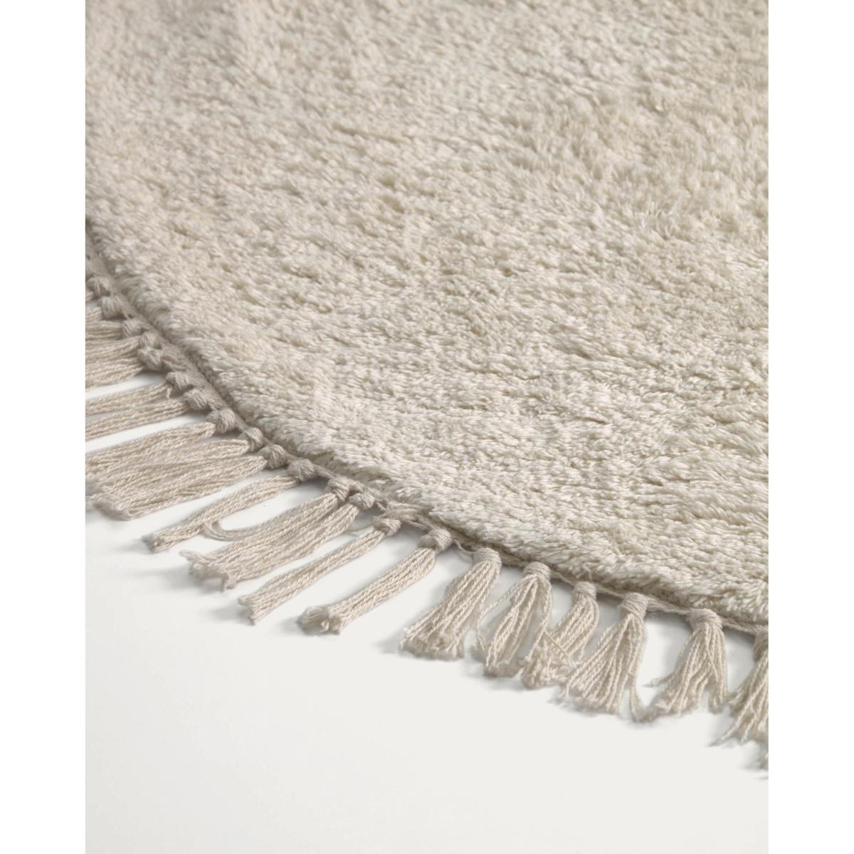 I love the Orwen rug for its compact size and versatile design, making it a great addition to both cosy corners and smaller living spaces. Its neutral colour palette ensures it works effortlessly with a range of interior styles, from Scandi minimalism to soft-boho schemes. The round shape adds a bit of visual interest, perfect for placing under coffee tables or in front of a sofa. Practical styling tips include pairing it with lightweight furniture to keep the look airy, or layering it over a larger rug to introduce texture without overwhelming the space. It’s an ideal ‘go-to’ piece for adding warmth and softness in smaller or more intimate areas.