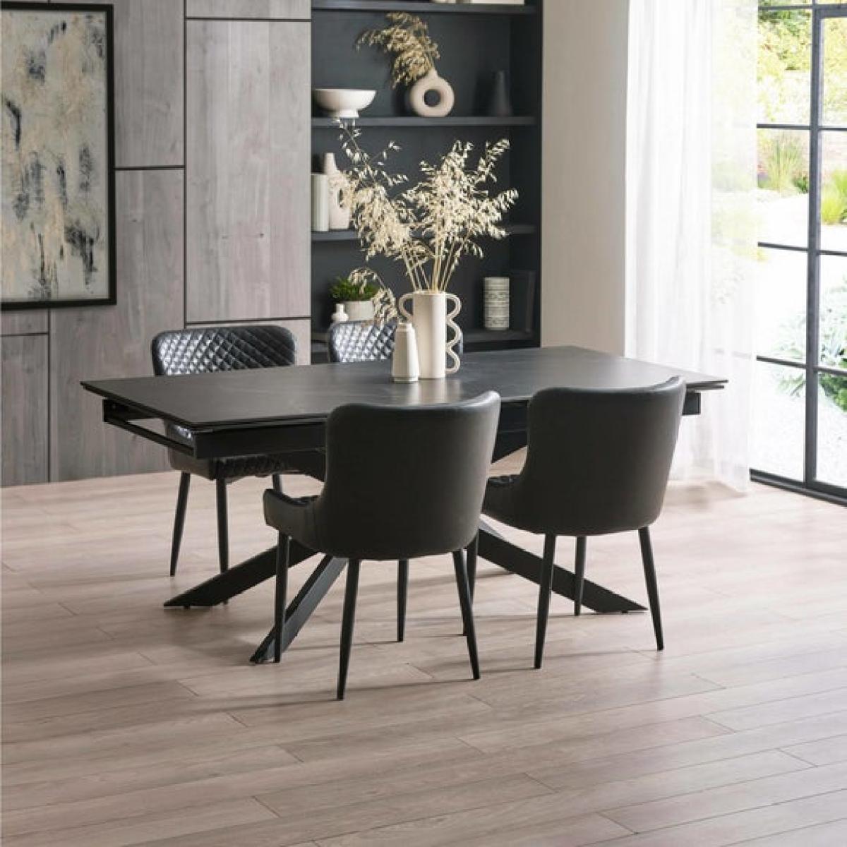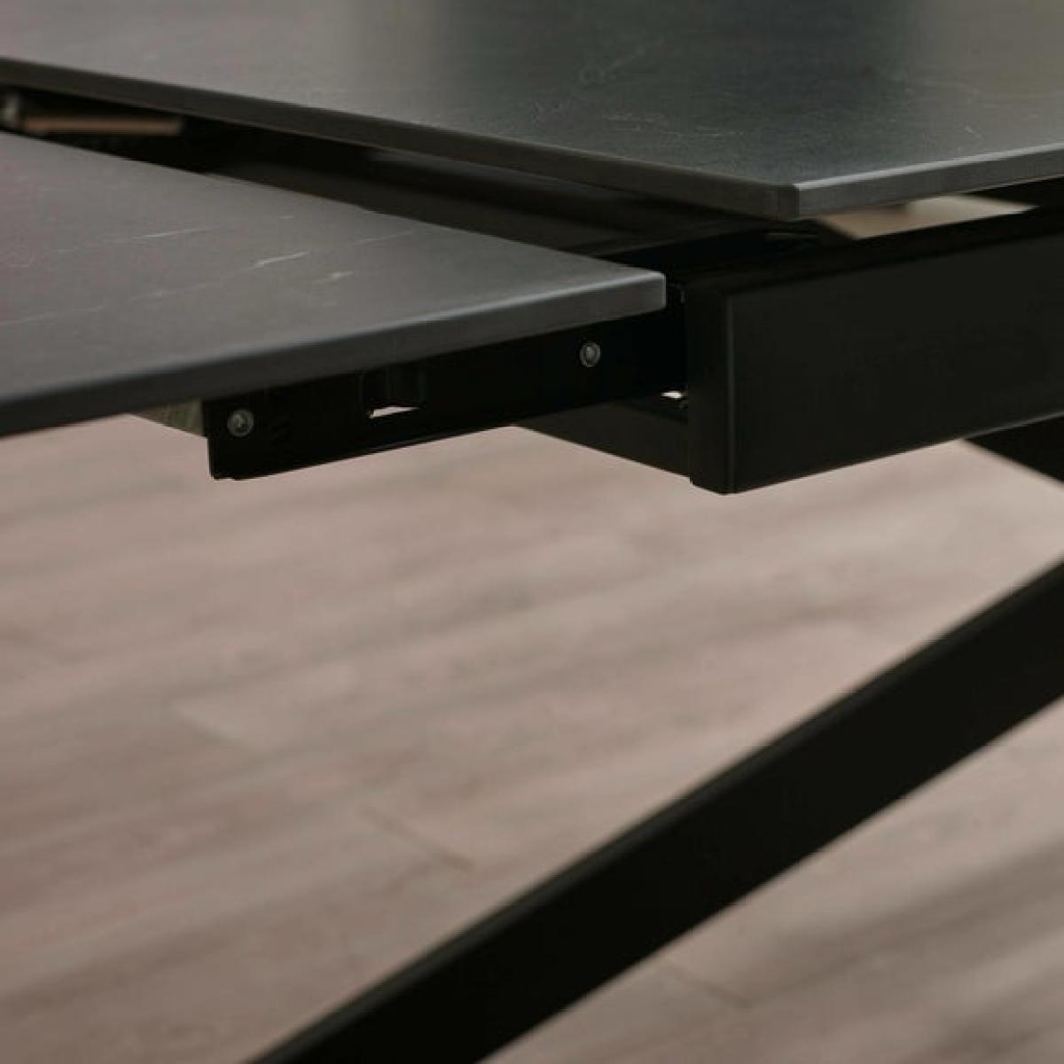 * Marble look ceramic top * Scratch and heat resistant * Extension leaf system * Sophisticated style Designed for contemporary living, the Osaka extending dining table pairs a graphite-look ceramic top with striking asymmetric legs. Scratch and heat-resistant, the surface is as practical as it is elegant. With a smooth extension mechanism expanding from 160 cm to 240 cm, it adapts seamlessly to everyday meals or larger gatherings.