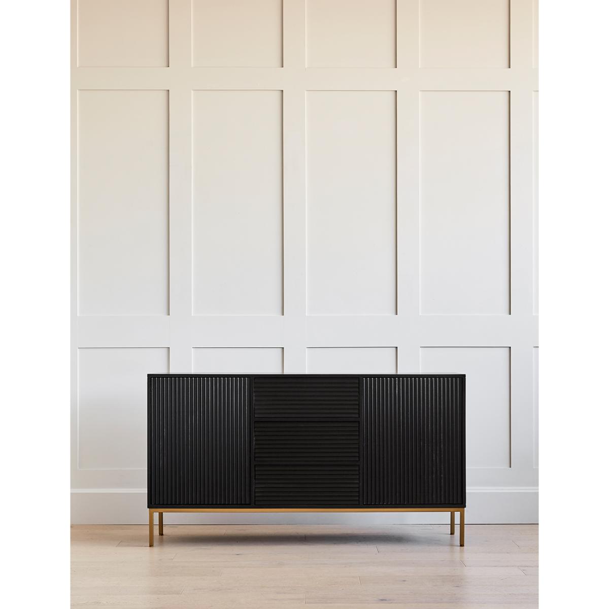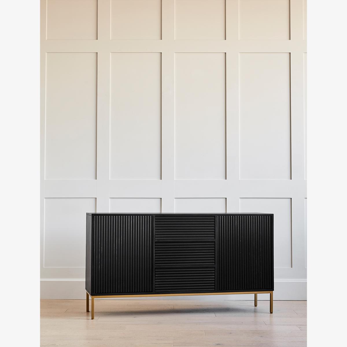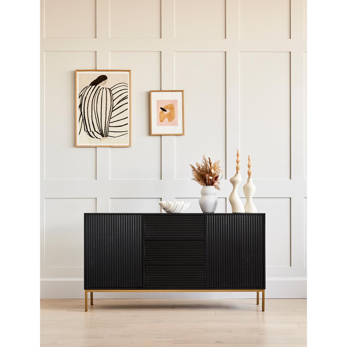 The Osaka Black & Brass Sideboard is a stylish piece that works particularly well in contemporary or modern interiors thanks to its sleek black finish and subtle brass accents. I love how it adds depth and a touch of luxury without overpowering a space. For styling, I recommend keeping the top surface minimal with a few curated accessories - think statement vases, books, or art pieces - to keep it looking tidy and sophisticated. It’s also versatile enough to work in dining rooms, living areas, or even as a hallway statement piece. To highlight its best features, pair it with warm wooden tones or metallic accents in the room. Practical tip: use the inside compartments for organising tableware or everyday essentials, making this piece both functional and stylish.