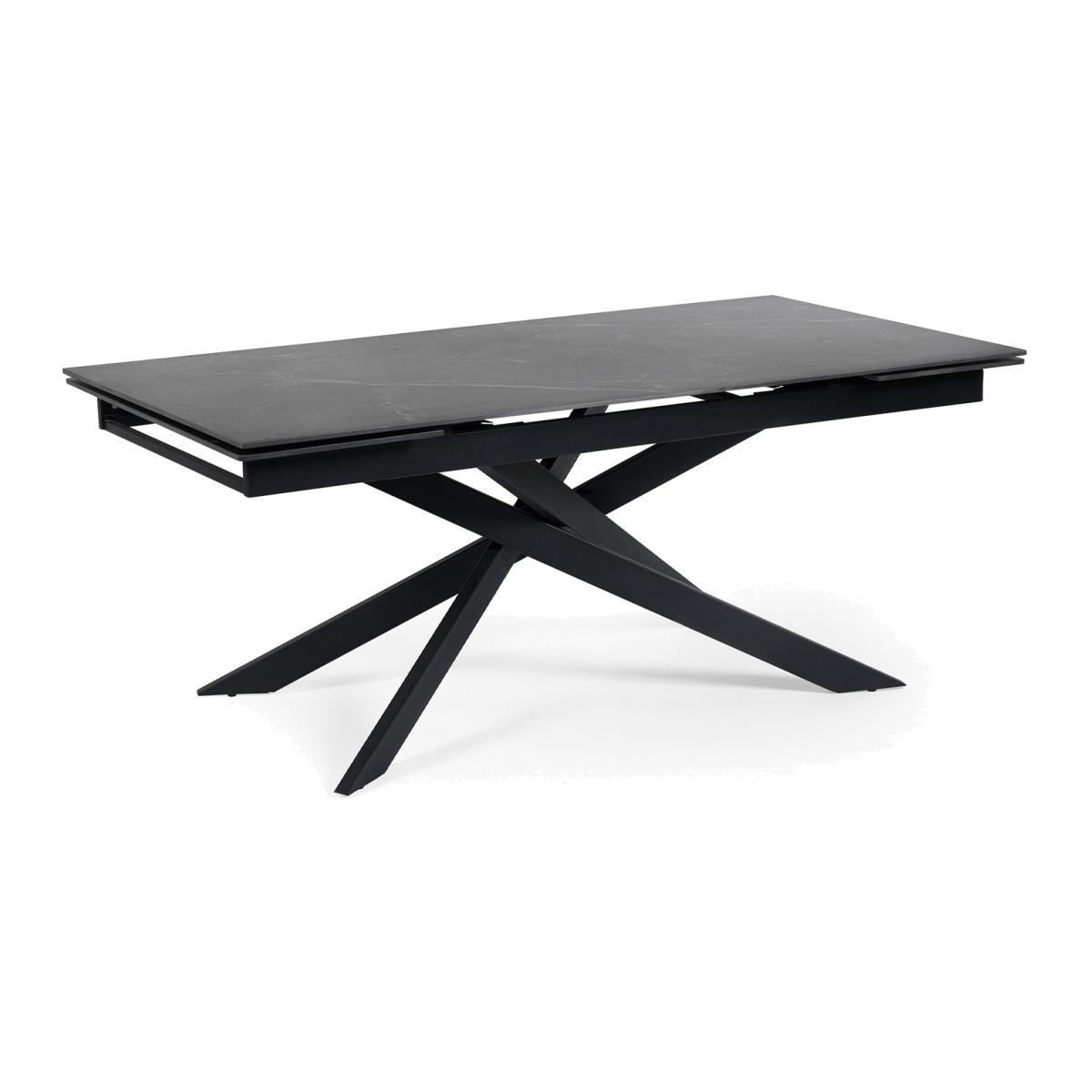 Bring elegance and versatility to your dining space with the Osaka Extending Dining Table, a perfect centerpiece for any modern home. Its sophisticated black graphite-look ceramic top combines luxury with practicality, featuring a scratch-resistant and heat-resistant surface thats as durable as it is stylish. The adjustable size, expanding from 160 cm to 240 cm with a smooth Synchronous extension leaf system, makes it ideal for cosy dinners or larger gatherings. Designed to make a statement, the tables asymmetrical black powder-coated metal legs create a bold and contemporary silhouette, while the solid metal base ensures exceptional stability. The extension leaf conveniently stores within the table when not in use, blending practicality with sleek design. Minimal assembly is required, ensuring a quick and seamless setup.