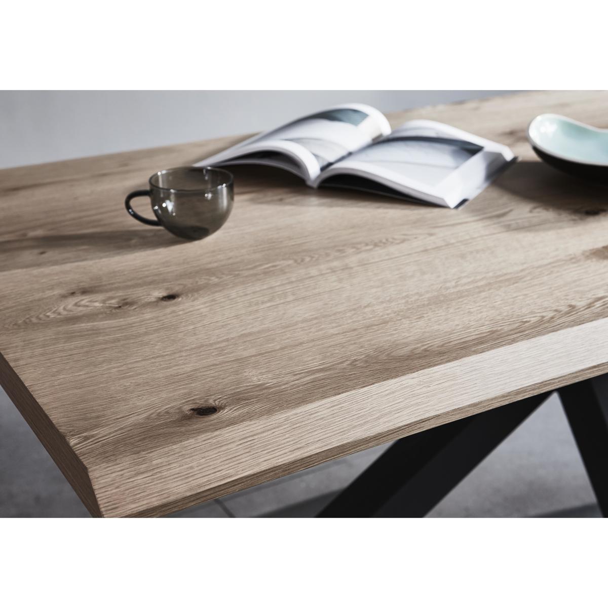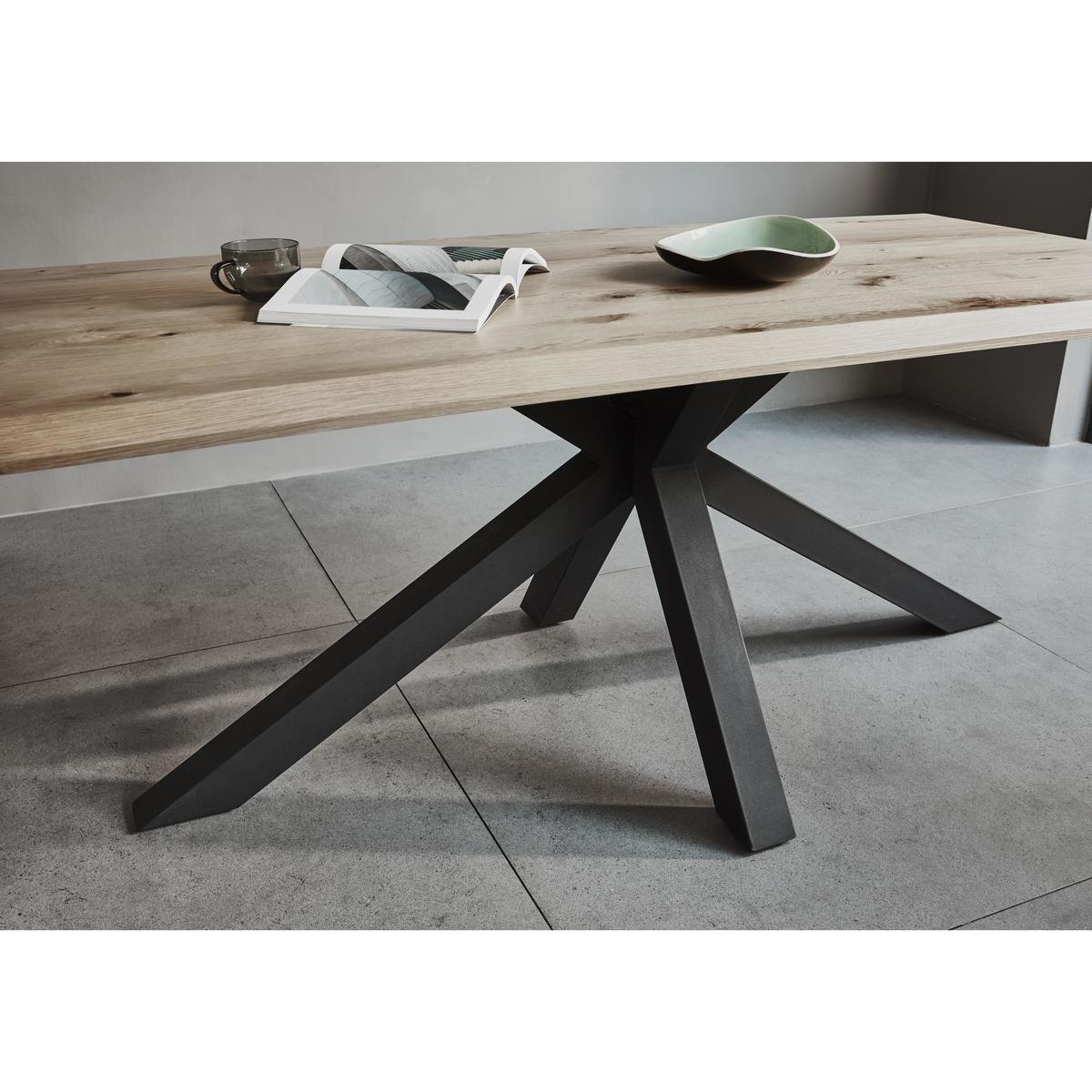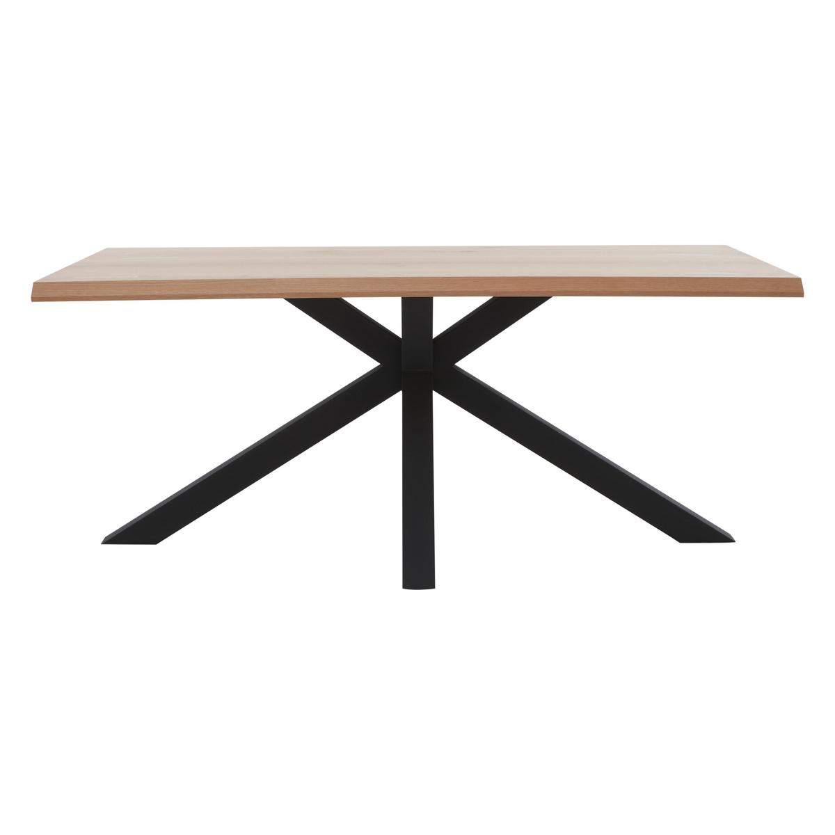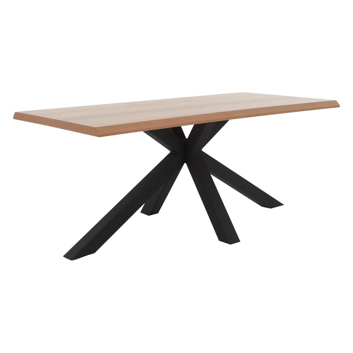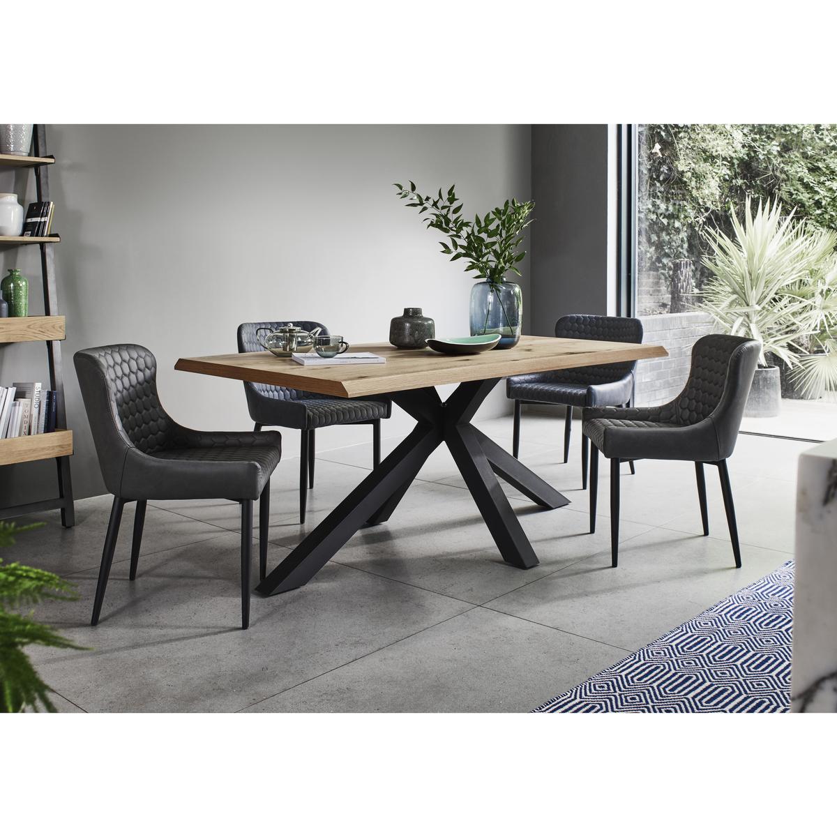 Fresh, relaxed and contemporary, the Osaka range of dining and occasional furniture pairs natural pale oak with black powder coated steel. The 8 seater dining table with its Industrial style crossed metal base is perfect paired with the elegantly curved dining chairs and a dining bench in quilted faux leather. The dining table has distinctive chamfered edges, with pale oak veneers showing off the natural grain of the wood. Complete the look with stylish occasional and storage pieces finished with slim black linear handles. Osaka is a Furniture Village exclusive at a fantastic value price. Stylish, great value dining table in pale oak seats 8. With a striking crossed black powder coated steel base. Pair with the Osaka or Sapporo chairs and dining benches. Seat eight people with ease at the gorgeous Osaka dining table, big in size and style but small on price. This lovely wooden dining table is made of solid oak with pale oak veneers, showing off the unique natural wood grain to perfection. The table’s chamfered edge and bold, black base made of powder coated steel give it an industrial edge, the ideal choice for the contemporary home. Sturdy, practical and incredibly stylish this oak dining table pairs beautifully with the faux leather quilted chairs or dining benches in the Osaka range. The velvet quilted chairs and benches from the Sapporo collection can also be paired with this dining table. Part of the Osaka range of living, dining and storage furniture exclusive to Furniture Village at a fantastic value price. Did you know?. Natural wood has unique markings, with some colour variation. The colour and tone of wood improves with age.