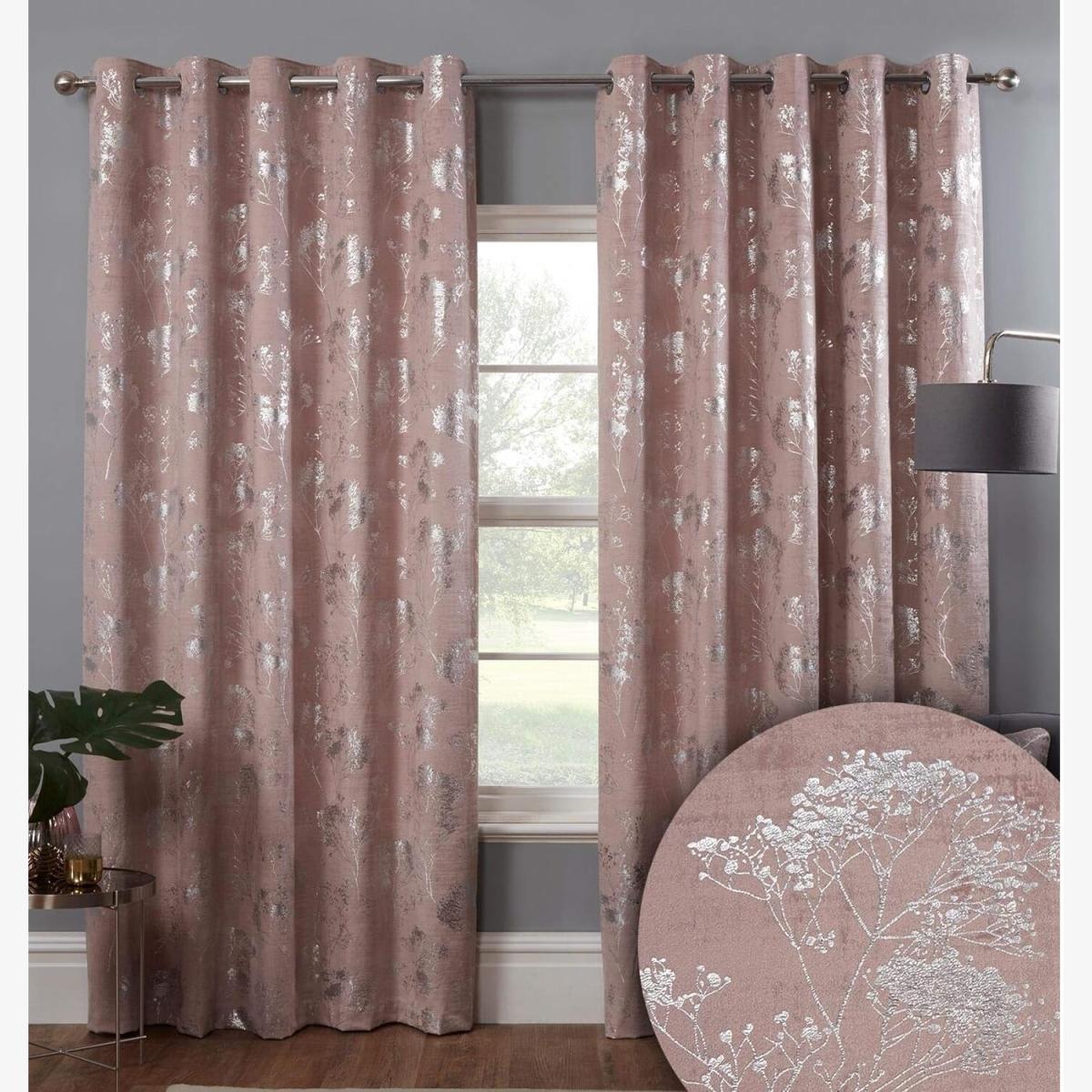 Osaka Metallic Velvet Fully Lined Eyelet Ring Top Curtains - Pink / 183cm / 168cm