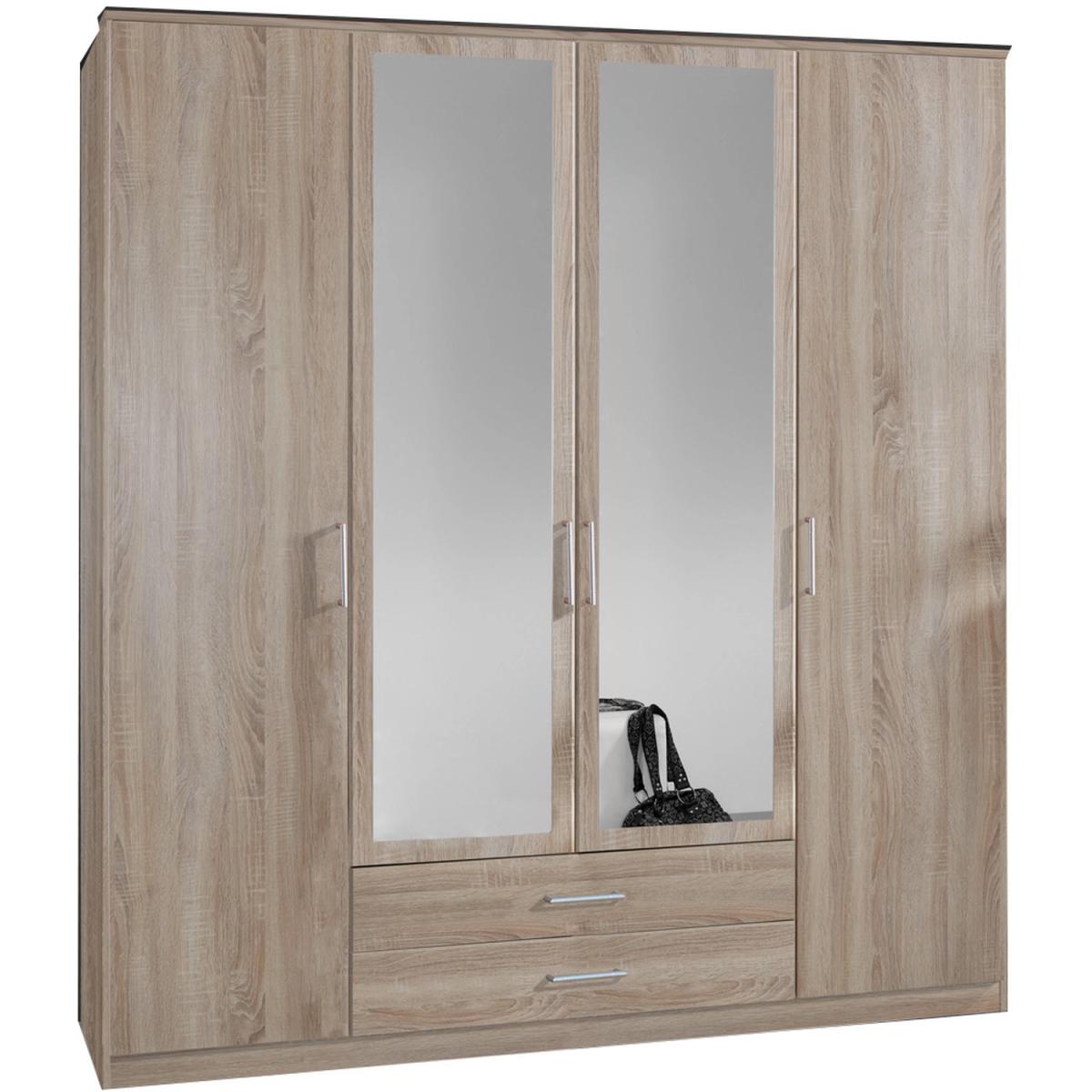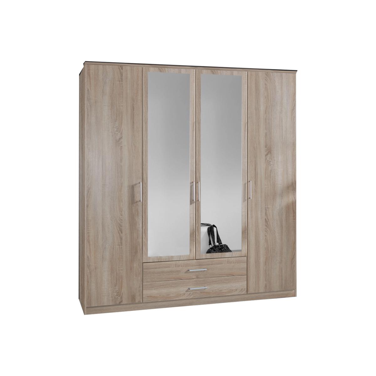 The Osaka 4 Door 2 Drawer Wardrobe offers a combination of hanging, shelving and drawer space. The wardrobe has trendy long handles along with the 2 centre doors being mirrored which give the wardrobe a modern look. This robe gives you 3 different areas of storage. The centre section is divided with 2 drawers at the bottom and 1 shelf and 1 hanging rail behind the 2 mirrored doors, the 2 outer sections are fitted with a single shelf and hanging rail in each. All TJS products are designed and built in Germany and constructed to a high standard. All TJS ranges are subject to full quality checks before leaving the factory to ensure a consistent standard of product.