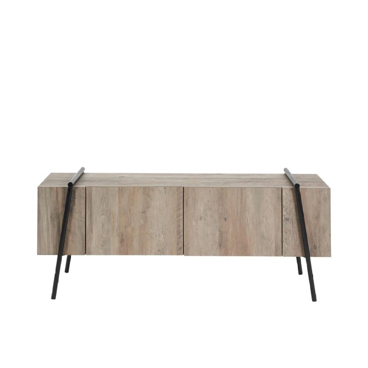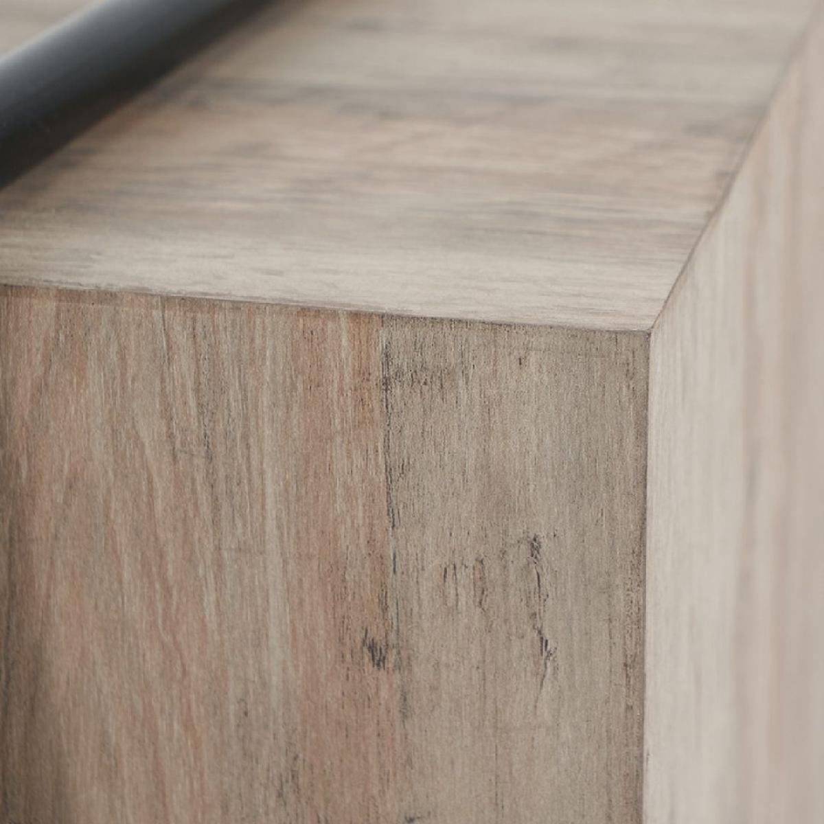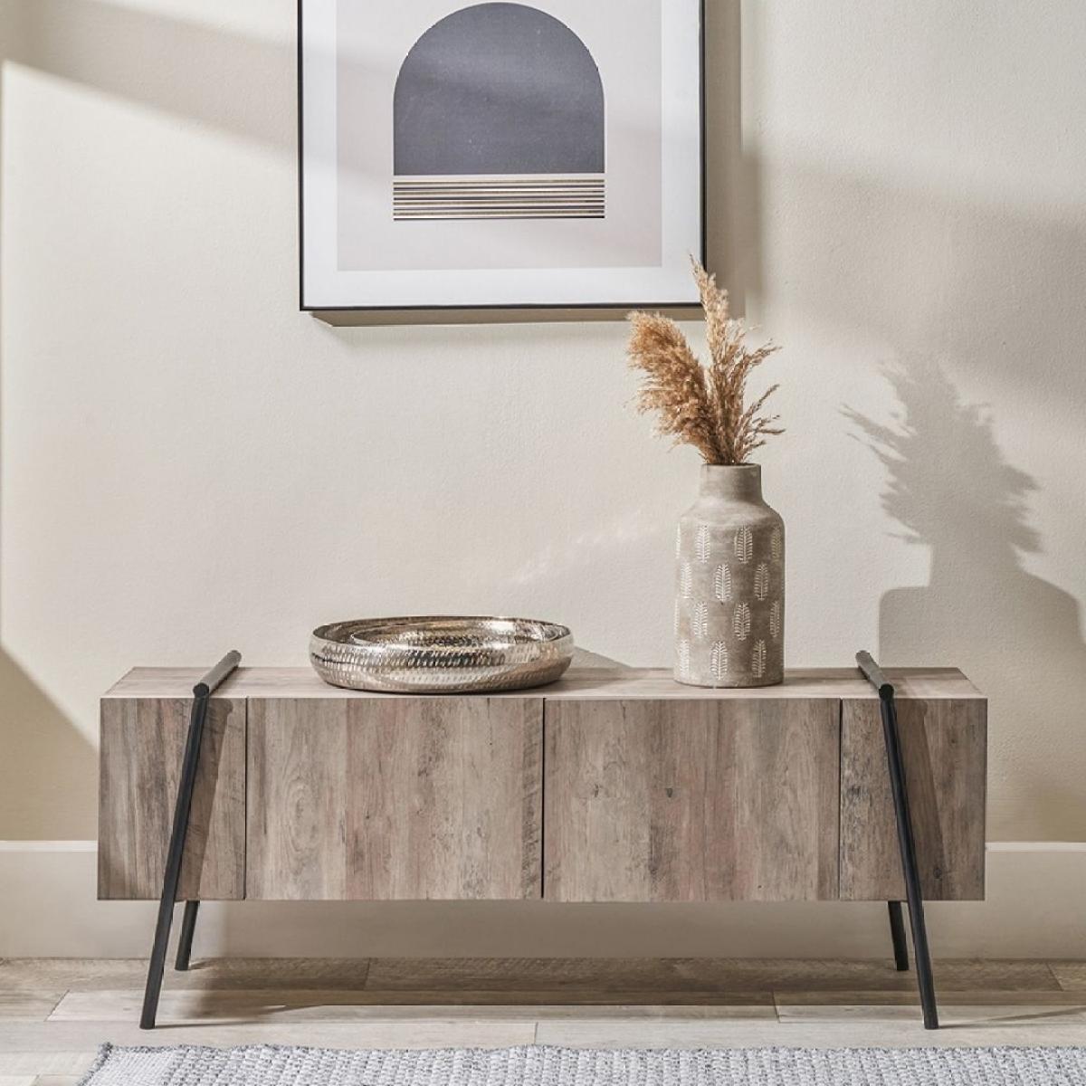 Osato 2-door low storage unit, featuring light brown wood veneer and linear black metal detailing. A perfect blend of modern design and natural elegance, this low unit features a sophisticated light brown wood veneer that adds warmth and a touch of organic beauty to any room. The wood veneer showcases the natural grain, creating a visually appealing texture that enhances the overall aesthetic. The unit is accented with sleek linear black metal detailing, providing a striking contrast to the light wood. These black metal lines add a modern, minimalist touch, enhancing the unit's contemporary appeal while maintaining a clean and streamlined look. Designed with functionality in mind, the Osato low unit offers ample storage space behind its two doors, making it ideal for organizing and concealing your essentials. Whether used in the living room, bedroom or hallway, this storage unit provides both practicality and style. Osato 2-door low storage unit, featuring light brown wood veneer and linear black metal detailing. A perfect blend of modern design and natural elegance, this low unit features a sophisticated light brown wood veneer that adds warmth and a touch of organic beauty to any room. The wood veneer showcases the natural grain, creating a visually appealing texture that enhances the overall aesthetic. The unit is accented with sleek linear black metal detailing, providing a striking contrast to the light wood. These black metal lines add a modern, minimalist touch, enhancing the unit's contemporary appeal while maintaining a clean and streamlined look. Designed with functionality in mind, the Osato low unit offers ample storage space behind its two doors, making it ideal for organizing and concealing your essentials. Whether used in the living room, bedroom or hallway, this storage unit provides both practicality and style.
