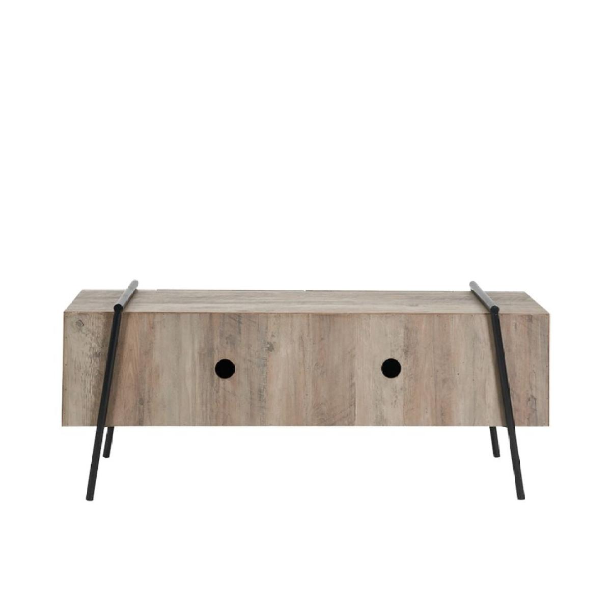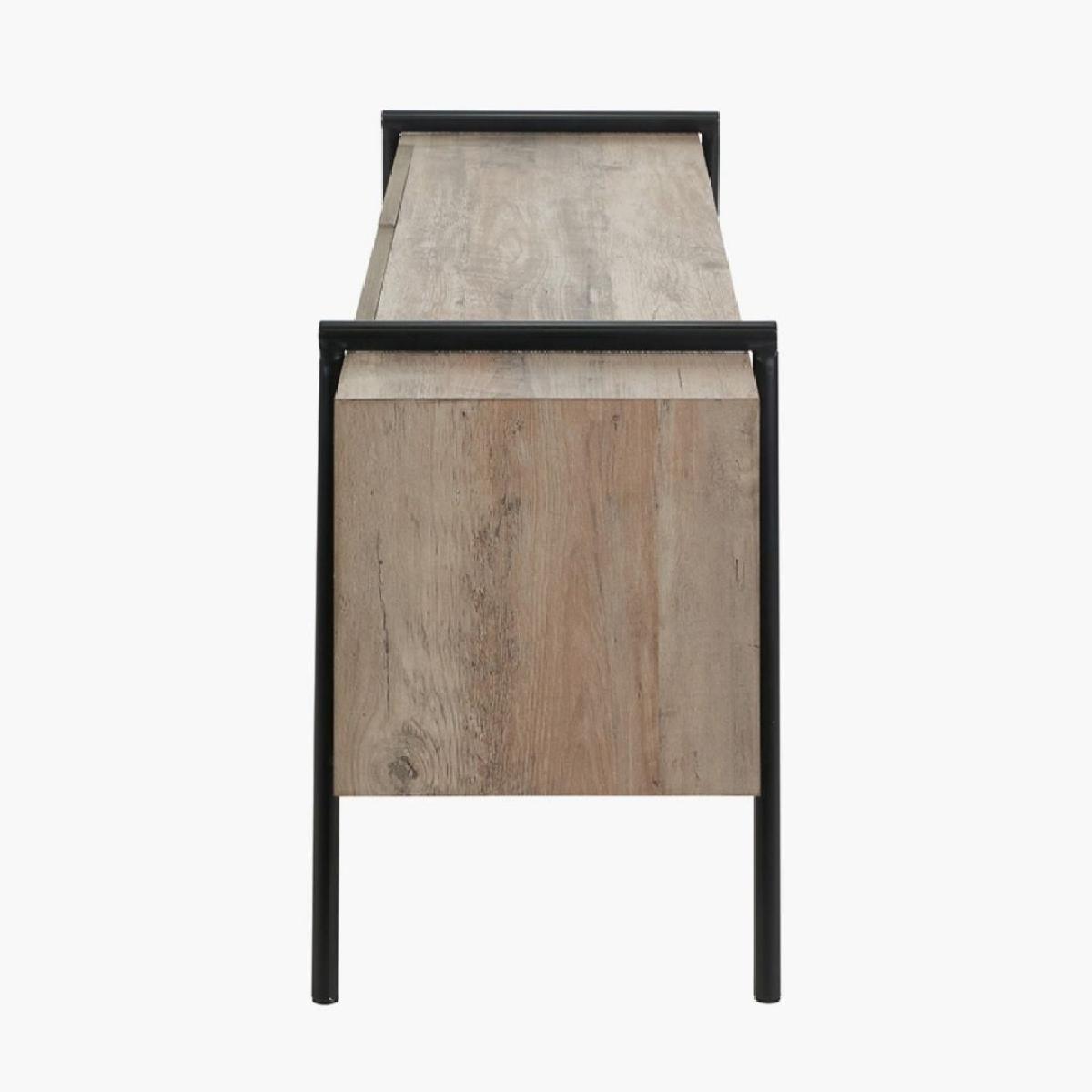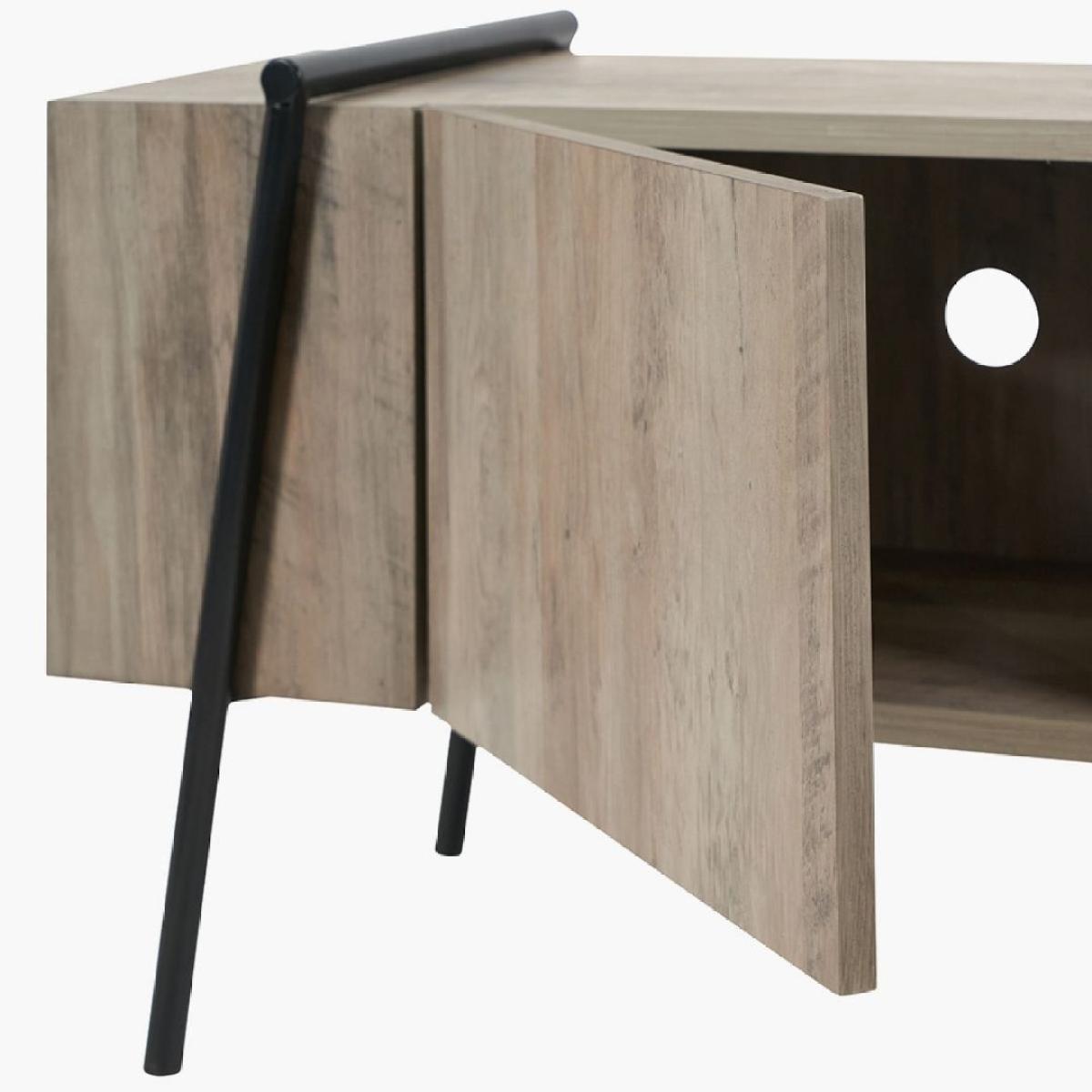 Osato 2-door low storage unit, featuring light brown wood veneer and linear black metal detailing. A perfect blend of modern design and natural elegance, this low unit features a sophisticated light brown wood veneer that adds warmth and a touch of organic beauty to any room. The wood veneer showcases the natural grain, creating a visually appealing texture that enhances the overall aesthetic. The unit is accented with sleek linear black metal detailing, providing a striking contrast to the light wood. These black metal lines add a modern, minimalist touch, enhancing the unit's contemporary appeal while maintaining a clean and streamlined look. Designed with functionality in mind, the Osato low unit offers ample storage space behind its two doors, making it ideal for organizing and concealing your essentials. Whether used in the living room, bedroom or hallway, this storage unit provides both practicality and style. Osato 2-door low storage unit, featuring light brown wood veneer and linear black metal detailing. A perfect blend of modern design and natural elegance, this low unit features a sophisticated light brown wood veneer that adds warmth and a touch of organic beauty to any room. The wood veneer showcases the natural grain, creating a visually appealing texture that enhances the overall aesthetic. The unit is accented with sleek linear black metal detailing, providing a striking contrast to the light wood. These black metal lines add a modern, minimalist touch, enhancing the unit's contemporary appeal while maintaining a clean and streamlined look. Designed with functionality in mind, the Osato low unit offers ample storage space behind its two doors, making it ideal for organizing and concealing your essentials. Whether used in the living room, bedroom or hallway, this storage unit provides both practicality and style.