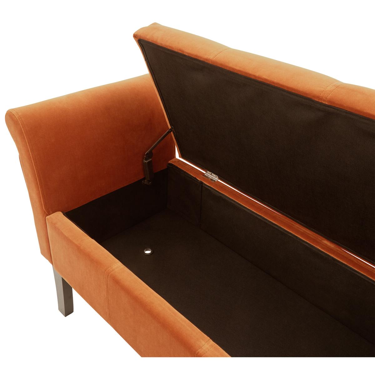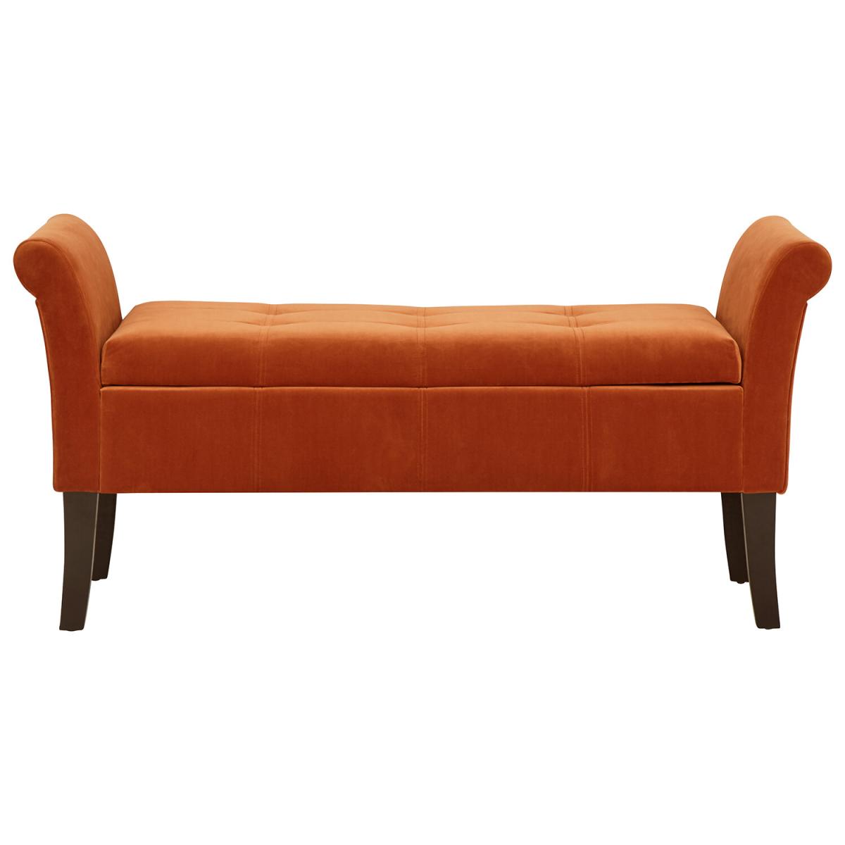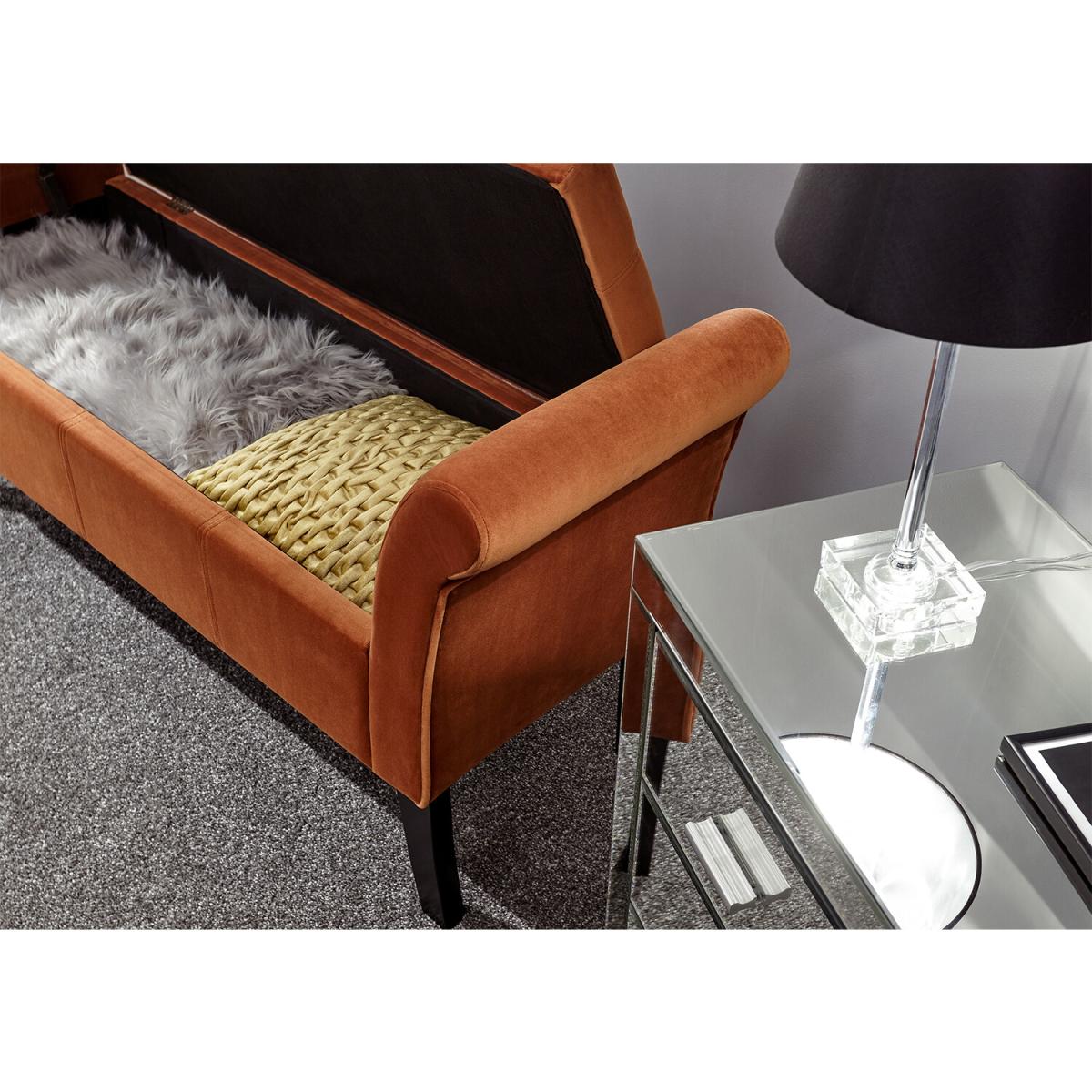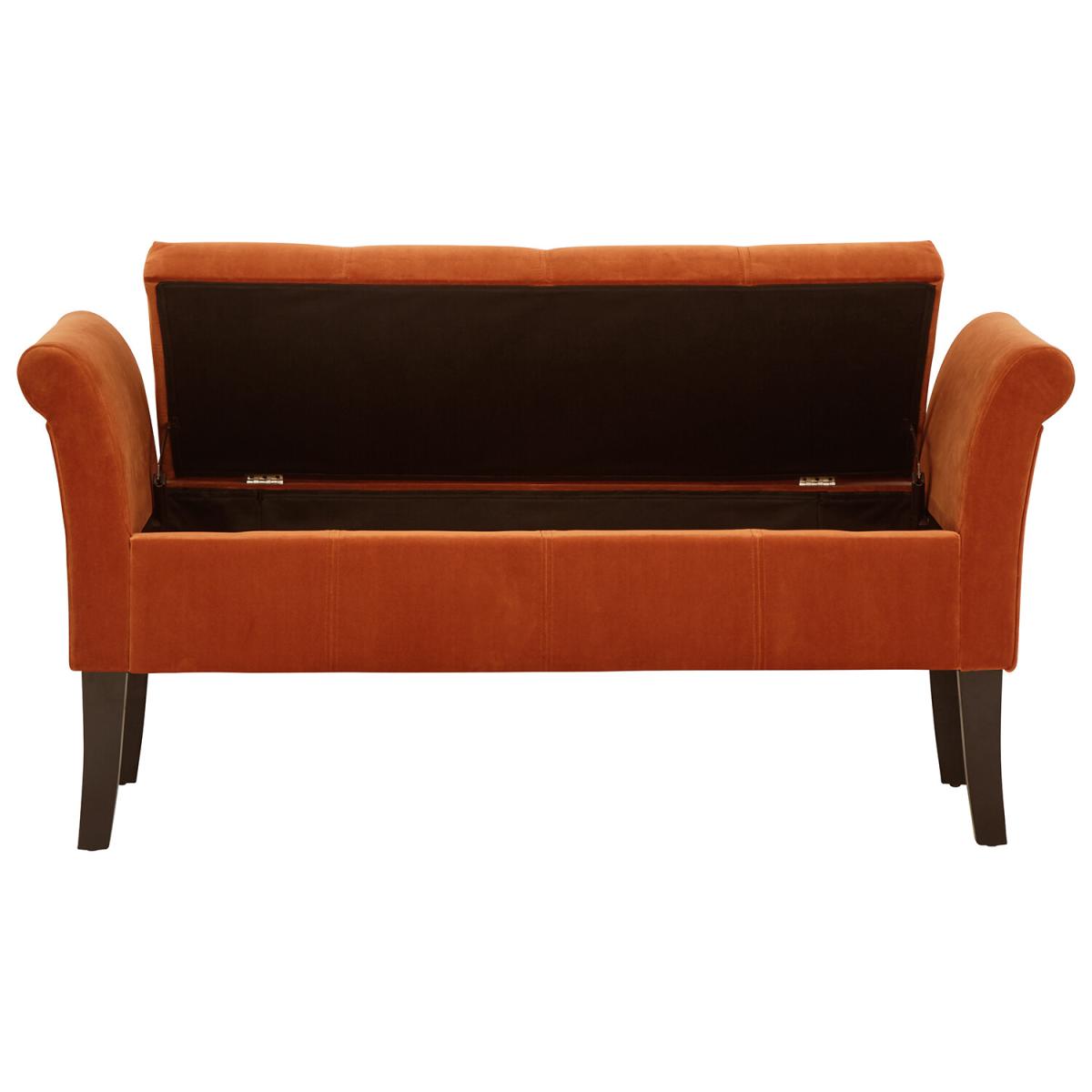 Create an elegant counterpoint to any room with this smart yet practical Osborne Window Seat. The softly padded frame incorporates a pair of rolled arms at either end, supported on sweeping solid wood legs. Upholstered in a gorgeous plush fabric with velvet pile, Osborne is available in a choice of on-trend colours that complement period and contemporary interiors. The seat base lifts to reveal a generous storage compartment beneath, perfect for storing blankets and throws, or your latest bestseller!
