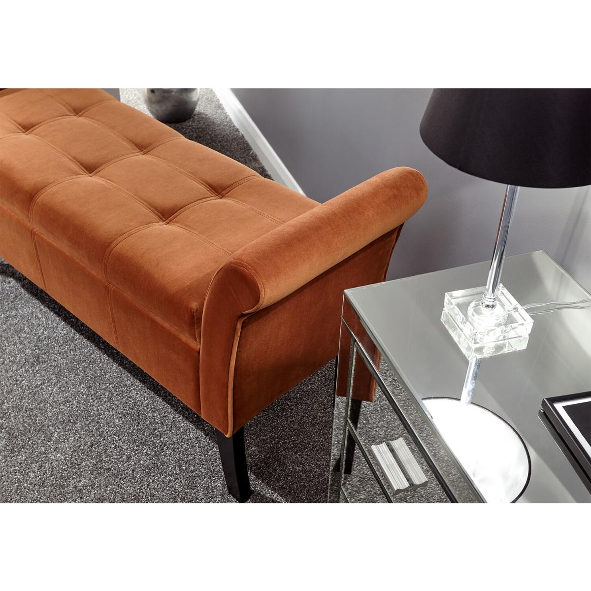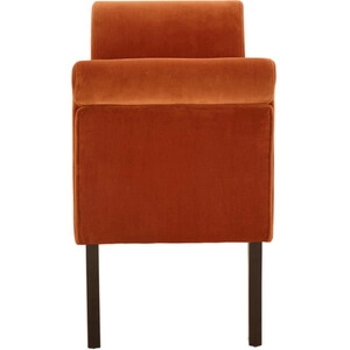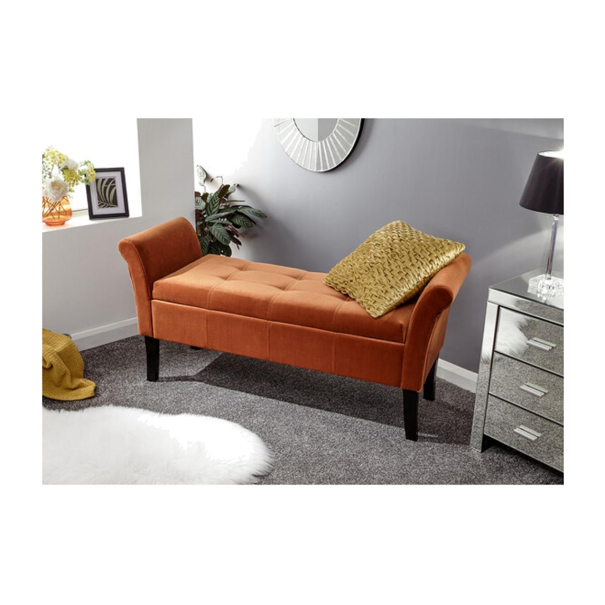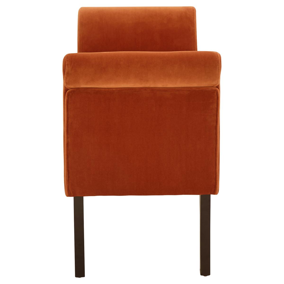 I love this bench for its rich russet hue, which works beautifully in both classic and contemporary interiors. It’s perfect as a statement piece in a cosy window nook or as additional seating in a living room. Its elegant, slightly curved profile and plush upholstery make it versatile-from pairing with neutral tones for a subtle contrast to adding a pop of colour in more vibrant spaces. Practical styling tips include layering with cushions for extra comfort or draping throws for a relaxed, inviting feel. Its compact size allows it to slot into various layouts, making it a functional yet stylish choice for any home look.