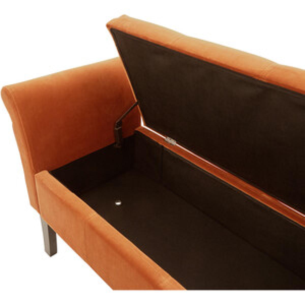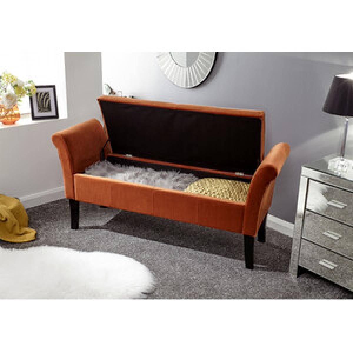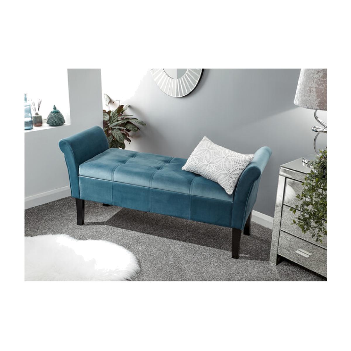 Create an elegant counterpoint to any room with this smart yet practical Osborne Window Seat. The softly padded frame incorporates a pair of rolled arms at either end, supported on sweeping solid wood legs. Upholstered in a gorgeous plush fabric with velvet pile, Osborne is available in a choice of on-trend colours that complement period and contemporary interiors. The seat base lifts to reveal a generous storage compartment beneath, perfect for storing blankets and throws, or your latest bestseller!