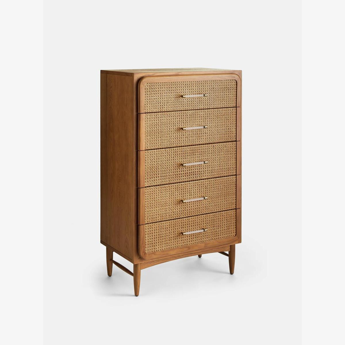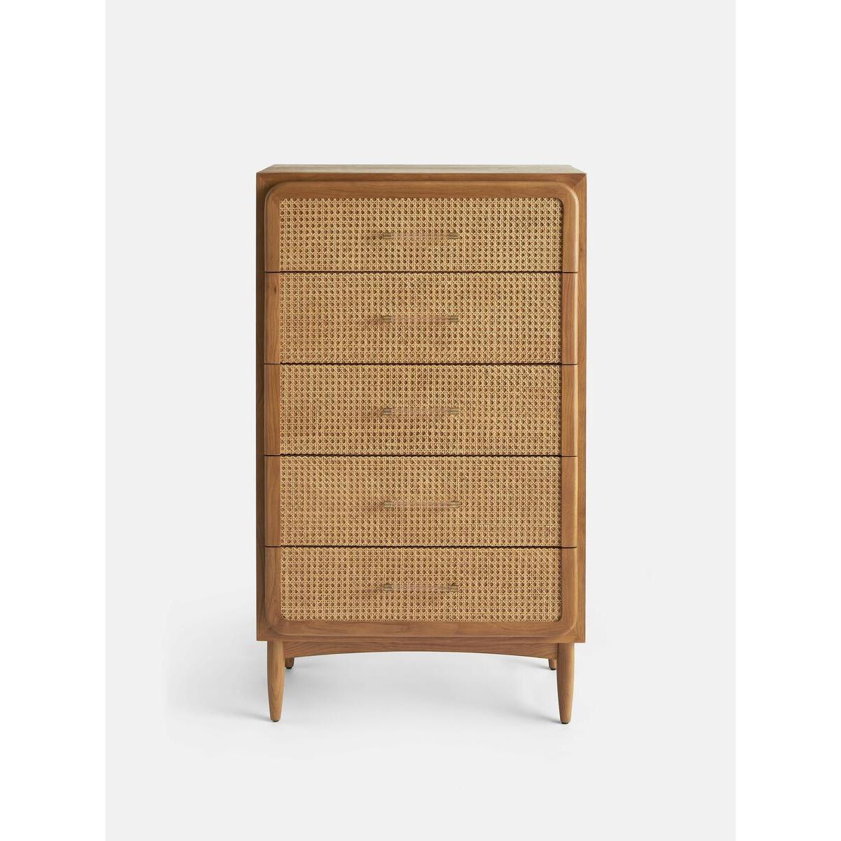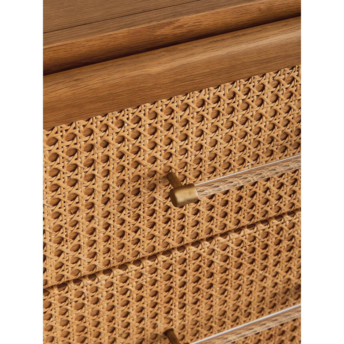 Inspired by Soho House Berlin, the Oscar dresser is an extension of our Oscar range, crafted from a combination of solid oak and rattan to create a sturdy base. Built with five spacious drawers and sleek handles, it brings a natural, lived-in feel to both classic and contemporary interiors schemes. Solid oak and cane dresser Five drawers Slim handles Compact design Inspired by Soho House Berlin