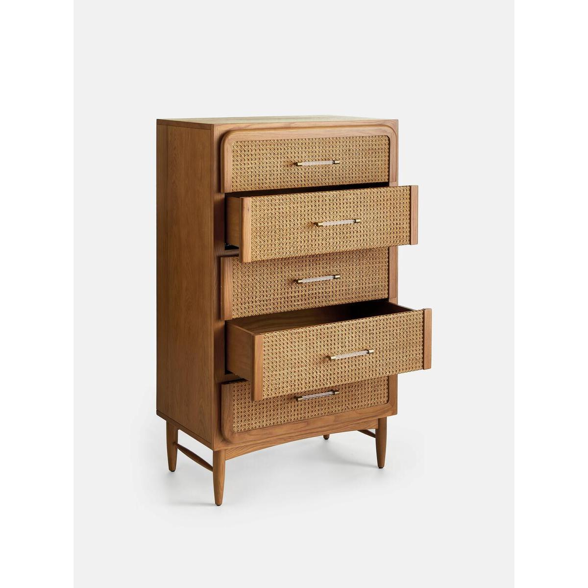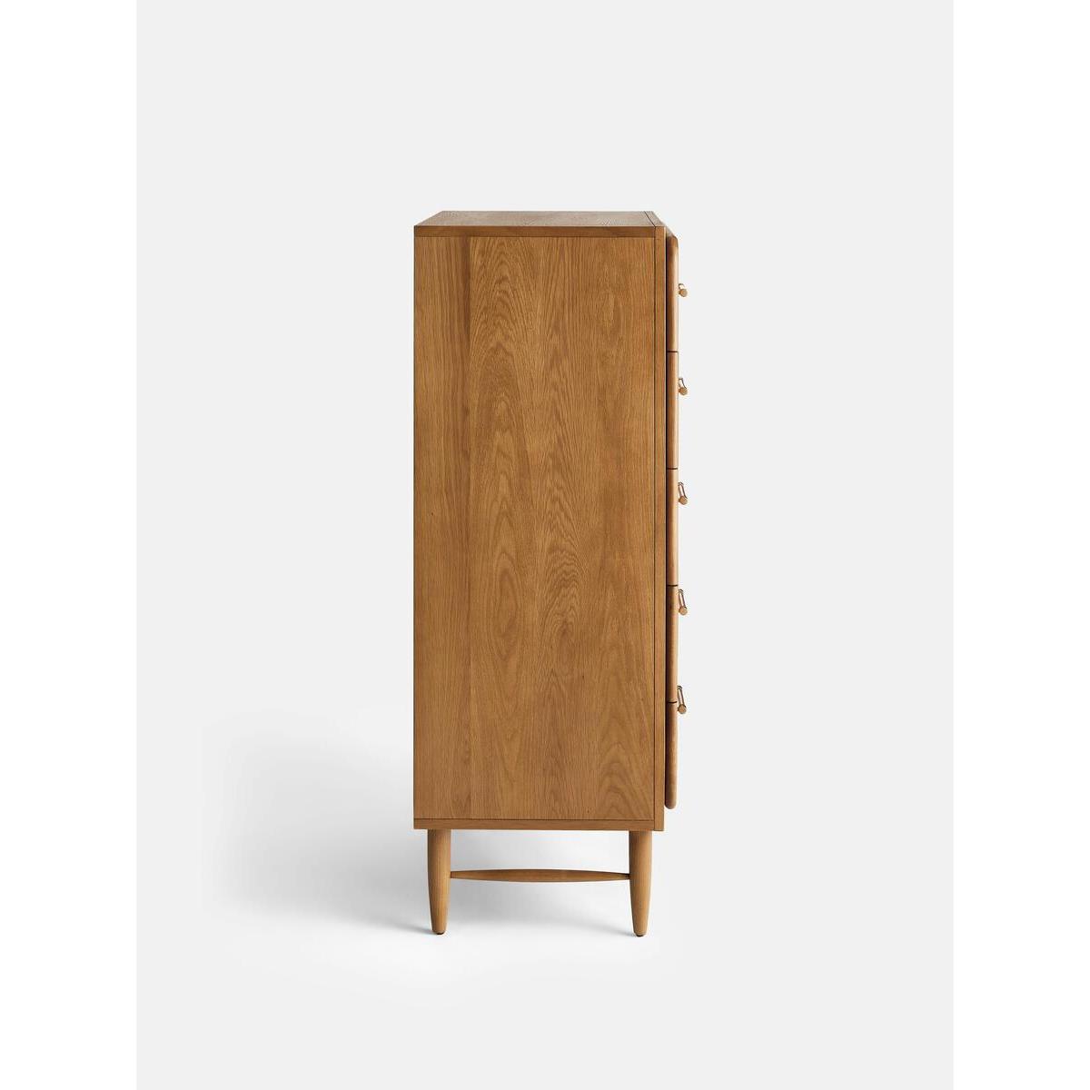 I love this chest of drawers for its mid-century feel and natural oak finish, which makes it versatile enough to sit comfortably in both modern and vintage-inspired interiors. The cane drawer fronts add texture and visual interest, making it an excellent feature piece in a bedroom or even a living space. Practical styling tips include pairing it with minimal accessories to highlight its craftsmanship, and adding a woven basket or organisation trays inside the drawers to maximise storage. It works particularly well in light, airy schemes or homes that incorporate natural materials, but its neutral tones mean it can also be paired with bolder colours for a more eclectic look.