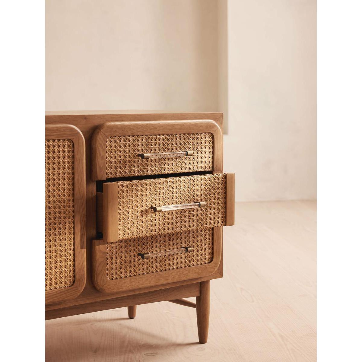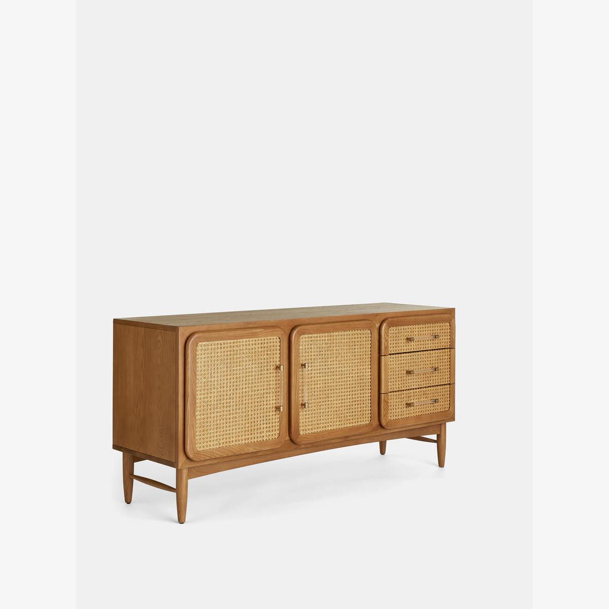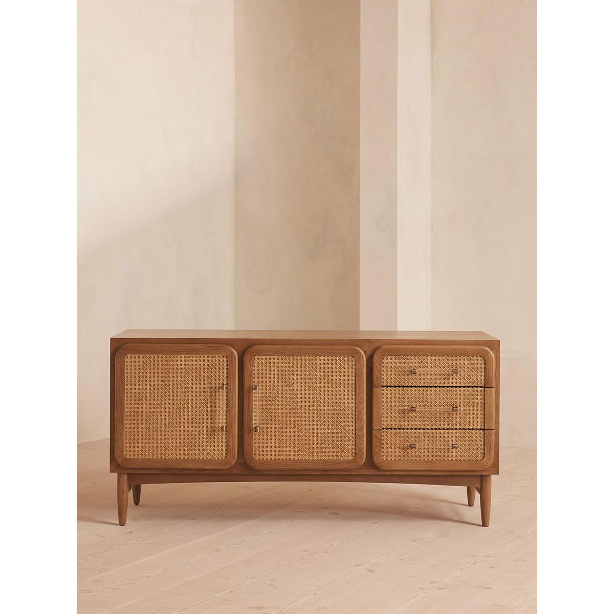 I really like the Oscar Cane & Oak Sideboard for its warm, natural aesthetic and versatile design. It works especially well in neutral or Scandinavian-inspired interiors, where its oak finish can add a touch of organic texture. Its size and storage capacity make it practical for housing media equipment, games, or accessories, while the cane-front doors lend a subtle tactile element that keeps the look from feeling too heavy. For styling, I suggest pairing it with minimal decorative objects like woven baskets, brass accents, or understated art to keep the overall look fresh and uncluttered. It’s a great piece to bring warmth and functionality to living rooms or open-plan spaces.