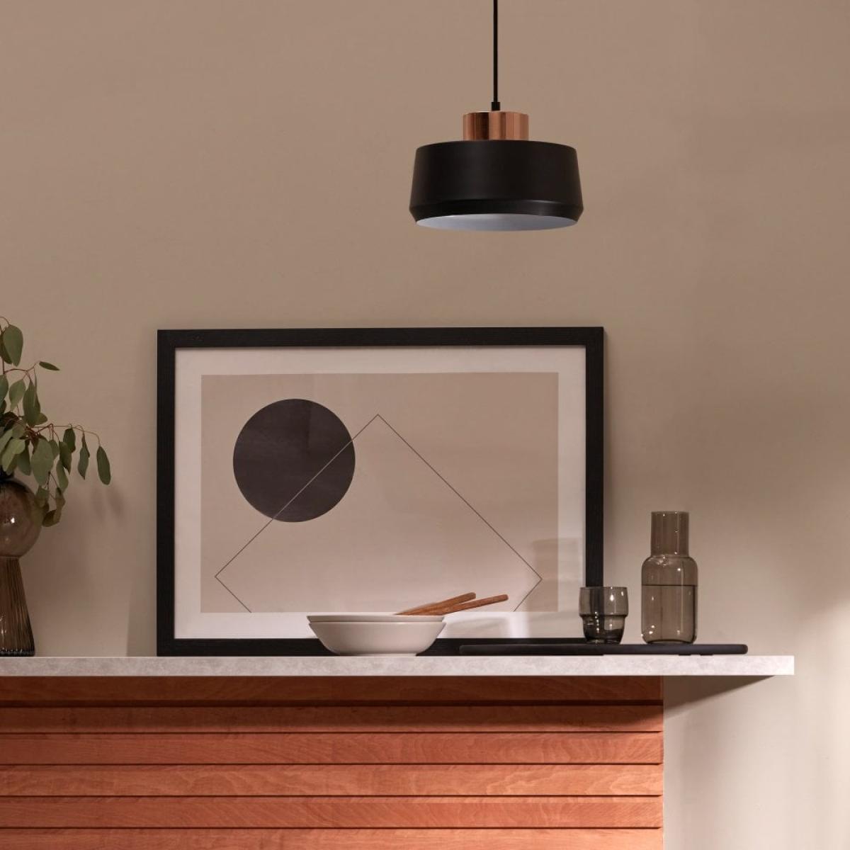 I love this pendant light because of its sleek, modern aesthetic that combines black with brass accents, making it an ideal statement piece for both contemporary and industrial-inspired interiors. It works particularly well in open-plan kitchens, dining areas, or elevated living spaces where you want to create a focal point. Practical styling tips include hanging multiple units over a breakfast bar or dining table for a cohesive look, or pairing it with minimalist furniture to let the geometric design shine. Its versatile colour palette allows it to blend seamlessly with neutral tones or add contrast against lighter backgrounds, making it a flexible choice for a variety of schemes.