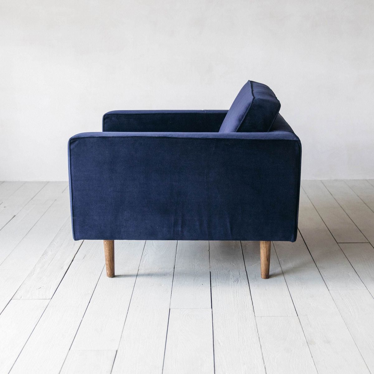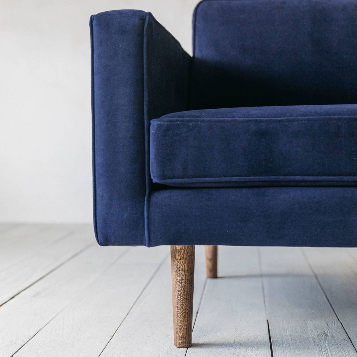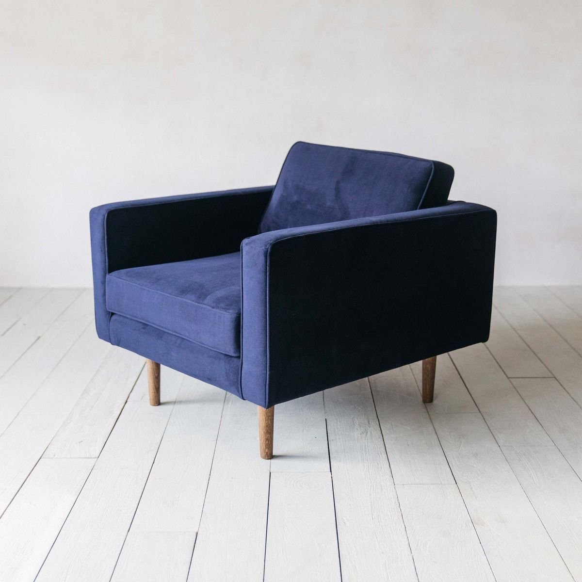 With clean lines and defined edges, our Oscar armchair features a bold, boxy design. Upholstered in sumptuous royal blue velvet and finished with mid-century inspired tapered legs crafted from solid oak wood, this statement piece provides the perfect spot to sit back and relax.