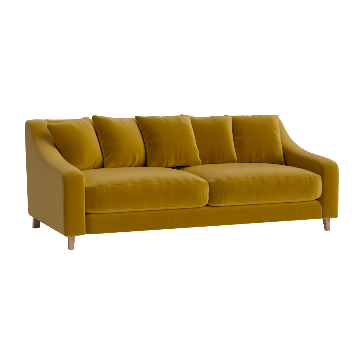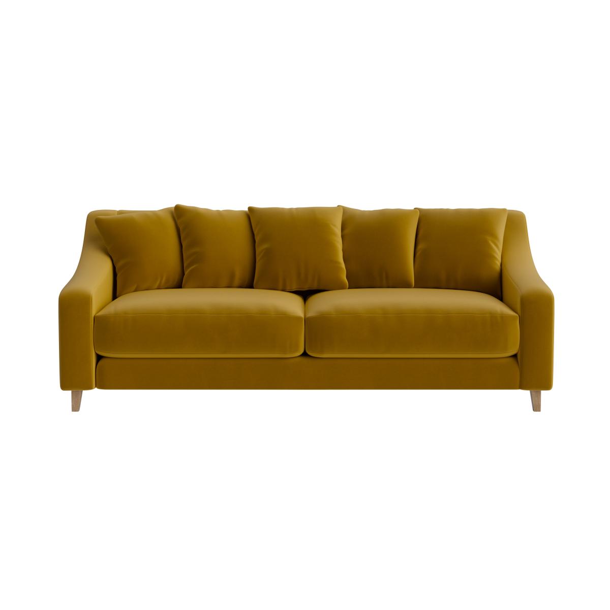I love the Oscar sofa for its timeless yet contemporary appeal. Its plush, mustard-yellow fabric makes it a statement piece that can brighten up both neutral and darker colour schemes. It works well in mid-century modern interiors, eclectic spaces, or even a more minimalist setting when styled with textured cushions or throws. For practical tips, consider pairing it with wooden or brass accents to complement its warm hue, and keep the surrounding accessories minimal to let the sofa remain the focal point. It's versatile enough for both casual family living areas and sophisticated lounge setups.