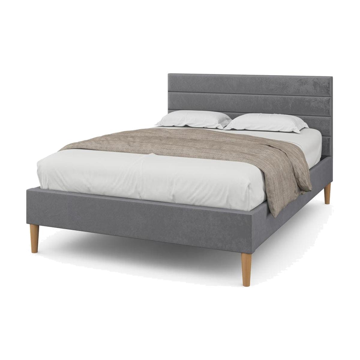 Looking for something simple and stylish Our Oscott velvet bed may just be the bed for you. The soft padded headboard features a contemporary lined design and the frame has a low footboard which helps make the room look and feel bigger. Simple wood effect tapered feet reflect on-trend Scandinavian inspired home decor. The bed is upholstered in lovely soft grey velvet which adds a subtle hint of luxury, whilst being versatile enough to complement any colour scheme.