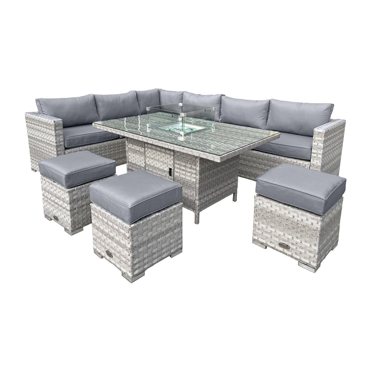 The Aruba Range is a larger-than-life collection, perfect for social gatherings and designed with Deep Luxury Seating in mind. Featuring 10cm thick seat and back cushions, this 9-seat set offers exceptional comfort that will elevate your outdoor space. The set includes a Rattan Firepit Dining Table, taking your garden set to the next level with dazzling flames and gentle warmth. Ignite the flame with the electronic ignitor button, then adjust the intensity with the dial. The set comes with a Glass Wind Guard, Metal Lid (for when not in use), FREE Fire Glass Pebbles, and a convenient hatch for your gas tank, making it easy to store and use.
