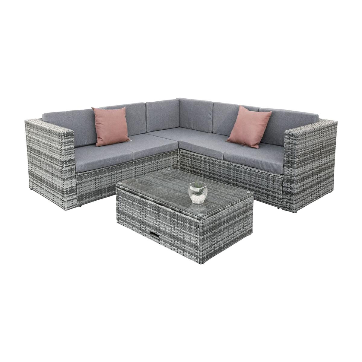 Outsunny Garden Corner Sofa Lounge,Coffee Table Set - Grey