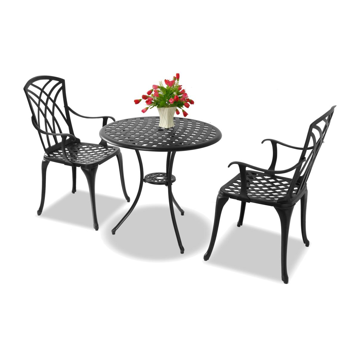 With its deluxe design, the Oshowa bistro set is both practical and convenient, and perfect for maximising any space. It is perfect for any garden, patio, terrace, decking, balcony, lawn, yard or similar areas, and adds a touch of elegance wherever it sits. The Oshowa is a 3-piece bistro set featuring 2-high backed large chairs with armrests and a matching table. It promotes a French influenced design, with weave pattern chairs, detailed weave pattern table top, and stylish legs. The table comes complete with a central hole for the placement of an umbrella or parasol with a diameter of 3.5cm. Made from no-rust cast aluminium, the Oshowa outdoor bistro set is strong yet lighter and easier to move than the traditional cast iron predecessor. It is low maintenance and easy to keep clean, it has been powder coated for durability and comes complete with rubber pads for steadiness. With durability in mind, the hardwearing Oshowa garden bistro set is designed to be left outside all year and be resistant to most types of extreme weather. Its long life span means it will not need replacing every few years like wood, plastic and other materials, and will not rot or rust. The Oshowa garden bistro set comes flat-packed with simple and easy-to-follow home assembly instructions. Each Chair measures as follows: Width: 52cm x Depth: 48.5cm x Height: 89cm / Weight capacity: 130kg. The Table measures as follows: Diameter: 70cm x Height: 68.5cm, Parasol Diameter: 3.5cm / Weight Capacity: 50kg. The Oshowa comes complete with a 1-Year Manufacturers Warranty Included.
