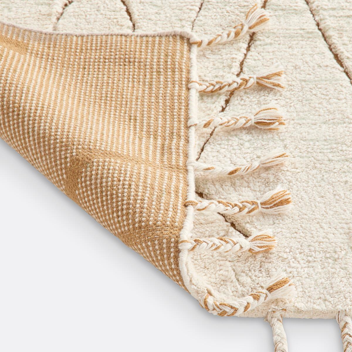 Abstract re-interpretation of the Berber style. Thick, quality wool. Handmade. Opt for the Osiana rug and bring personality and comfort into your home. Product Details • 100% wool • 2800g/m2 • Thickness: 3cm • Weaving type: Handmade • Compatible with underfloor heating:Yes • Interior Use: Yes • For outdoor use: No • Artisanal craftsmanship. Quality Info • Wool is a warm and comfortable fibre. In addition to being wear-resistant, wool carpet is also an excellent thermal and sound insulator.. • Hand-braided, each piece is unique and may have small irregularities which make it authentic.. Colours and dimensions may vary slightly. Care advice • Once unrolled, you must wait a few days for the carpet to return to its initial shape.. • To keep the edges flat, roll your mat in the opposite direction. Leave it like this for an hour then put it back flat and place a heavy object on it for 2 days. • New, the carpet may give off an odour which dissipates over time. Ventilate your room regularly to reduce it. • To preserve its appearance, rotate your rug regularly in one direction or the other to minimise localised wear in the same places (due to successive passages), and loss of colour due to regular light. Care Advice • Some materials are very fibrous (like wool) and you can actually observe pilling in the first weeks of use. : this is normal because the carpet "bursts" by rejecting its excess fibres. Remove lint as much as possible by hand and do not use the vacuum cleaner in brushing mode as this will pull the fibres and tear them out.. The pilling will improve over time. • For maintenance, we advise you to vacuum it very little the first month and then to vacuum it without rubbing too much always without using the brush. • Compatible with robot vacuum cleaners: No • Remove stains immediately with a clean, damp cloth. • Dry clean recommended. Sizes • Width 120 x Length 170cm • Width 160 x Length 230cm • Width 200 x Length 290cmDelivery:. This product will be delivered to your home. • OEKO-TEX® Standard 100. Standard 100 certification by OEKO-TEX® tests textile products for harmful substances via an independent, international label.