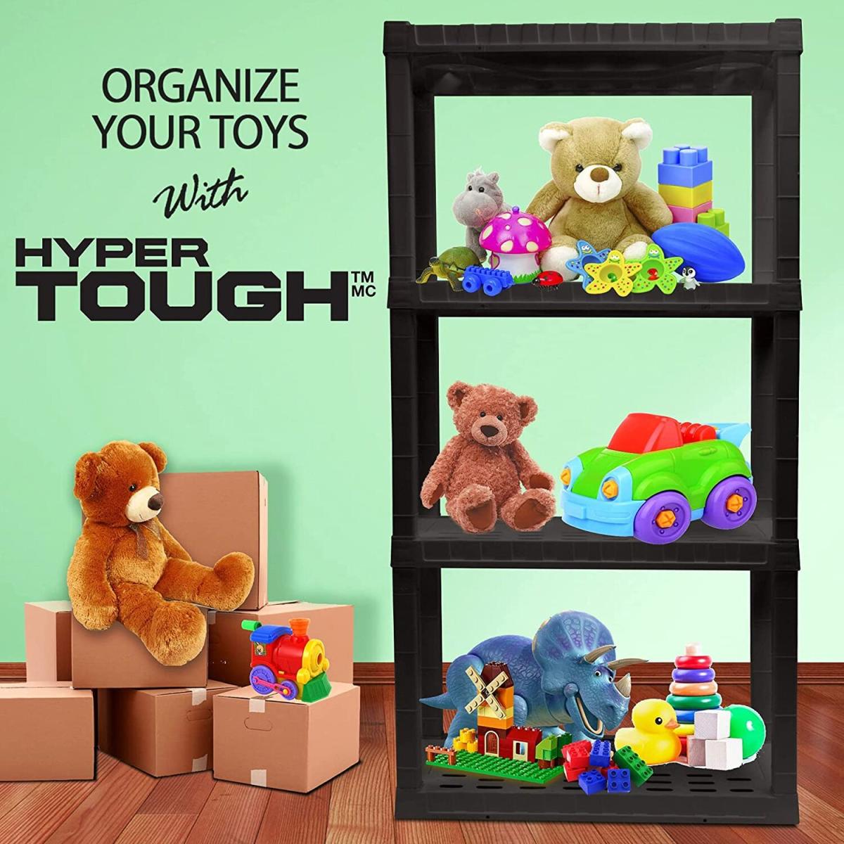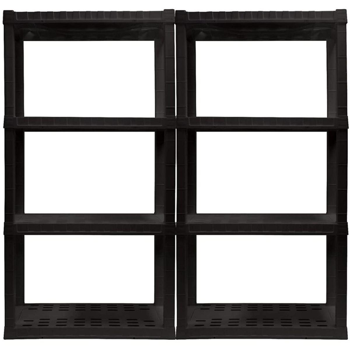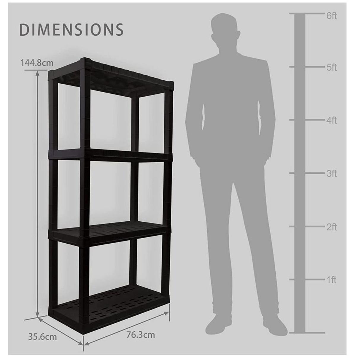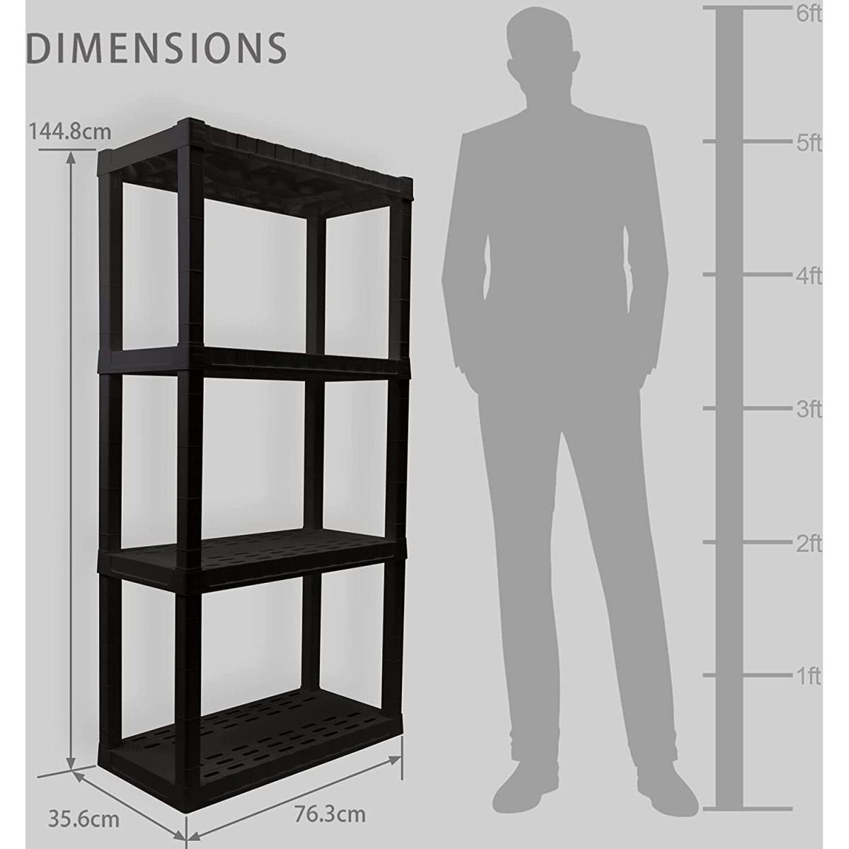 Organize your life with Oskar storage shelves: Adding shelving is one of the simplest ways to organize even the most limited spaces, protect your items from damp floors, and more. Maximize your storage space with this versatile 4-tier shelving unit, proudly manufactured in North America. This lightweight unit snaps together with no tools required and can be assembled and moved by just one person so you can get started on your home organization project right away. Heavy-duty molded plastic resin shelves hold up to 100 lbs (45 kg) each for a total storage capacity of 400 lbs and will not rust, dent, stain, or peel. Nested legs and anchor holes offer added support and security and ventilation holes in the shelves allow air to flow freely around your items for low-maintenance long-term storage. Whether you are decluttering your basement, organizing your craft room, or spring cleaning your garage, Oskar has the perfect shelving solution for you