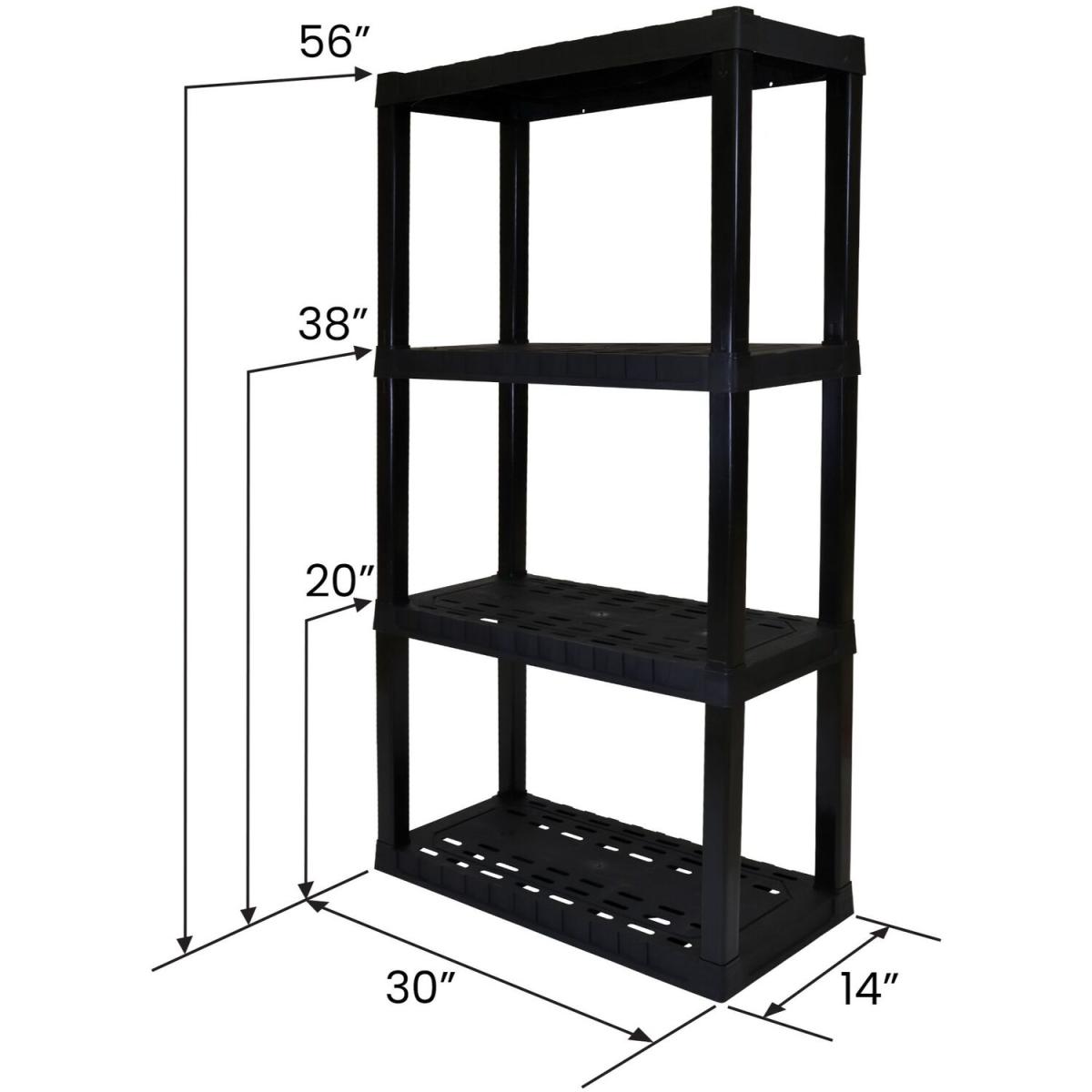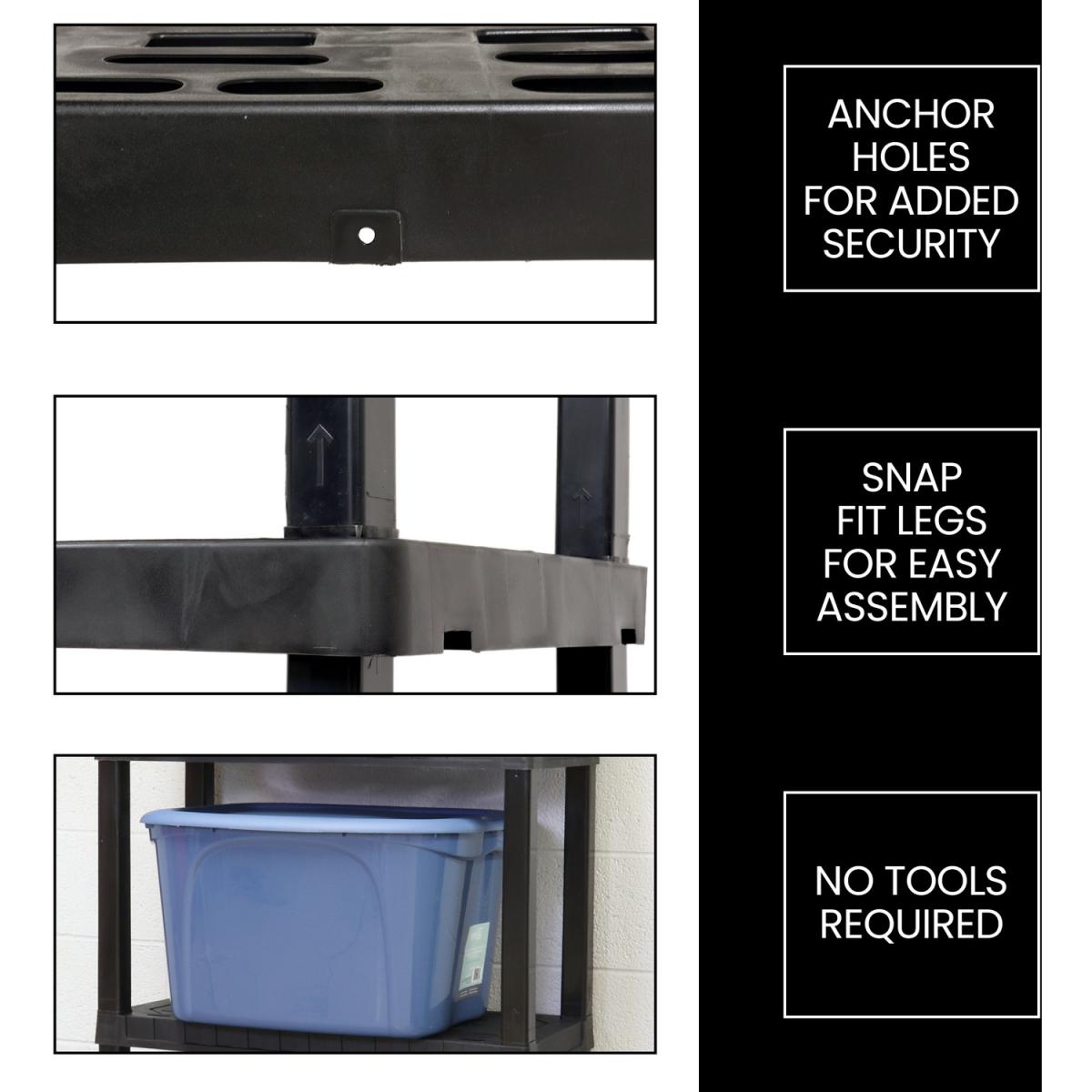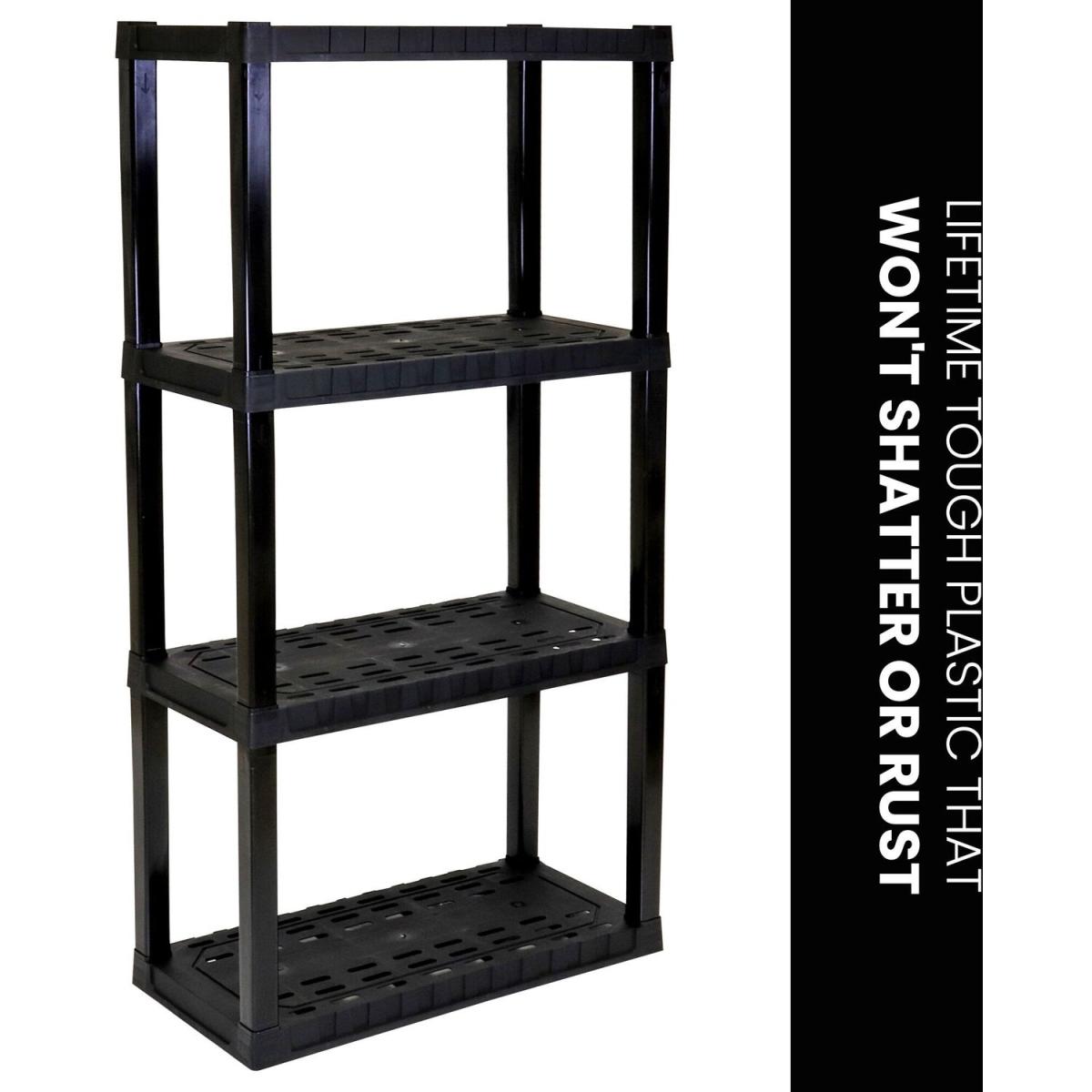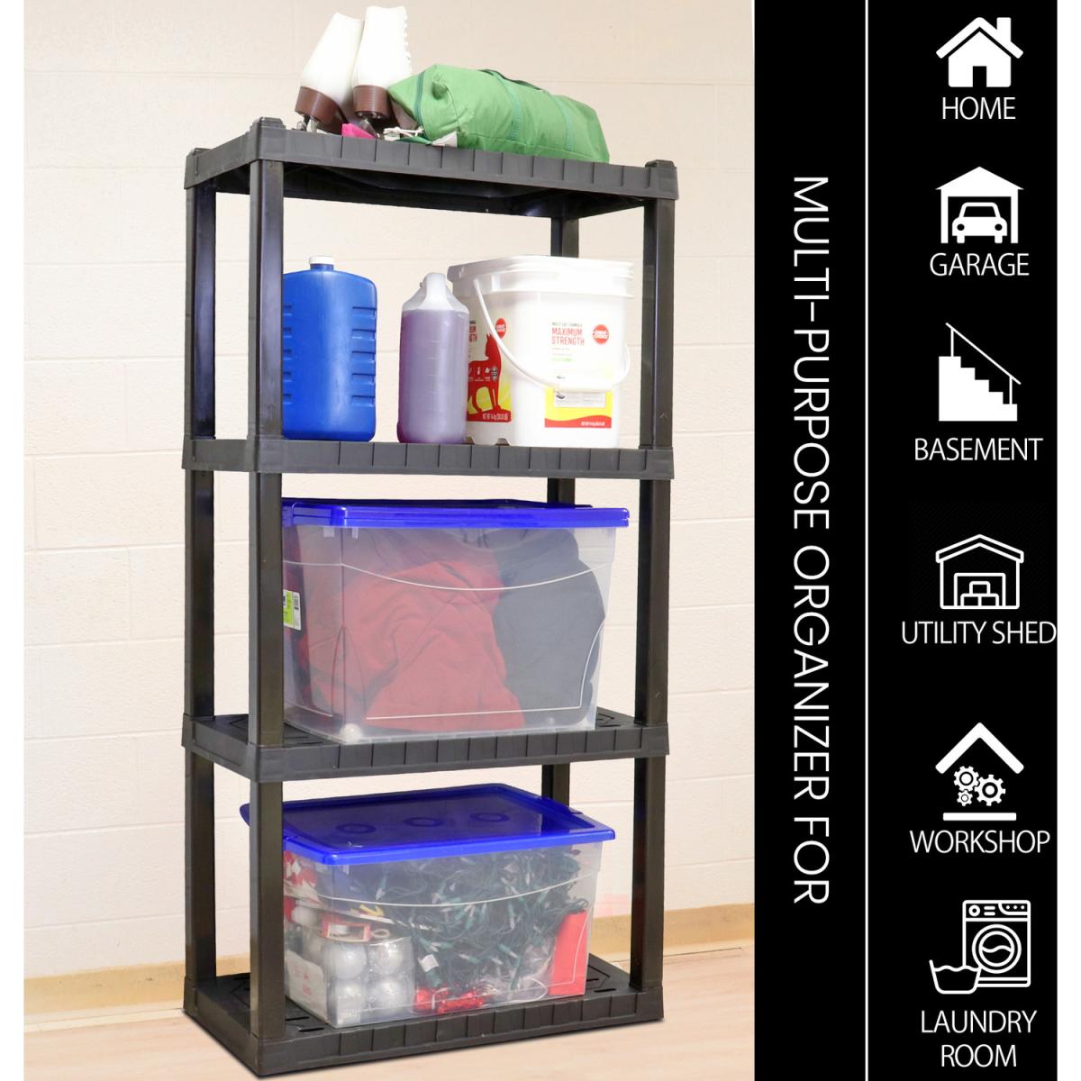 Adding shelving is one of the simplest ways to organize and declutter even the most limited spaces, protect your items from damp floors, and more. Maximize your storage space with this versatile 4 tier shelving unit, proudly manufactured in North America by Koolatron. The heavy-duty shelves hold up to 100 lbs each for a total storage capacity of 400 lbs, with nested legs and anchor holes for added support and security. Ventilation holes in the shelves allow air to flow freely around your items, preventing moisture build-up even in damp spaces like basements or garages.