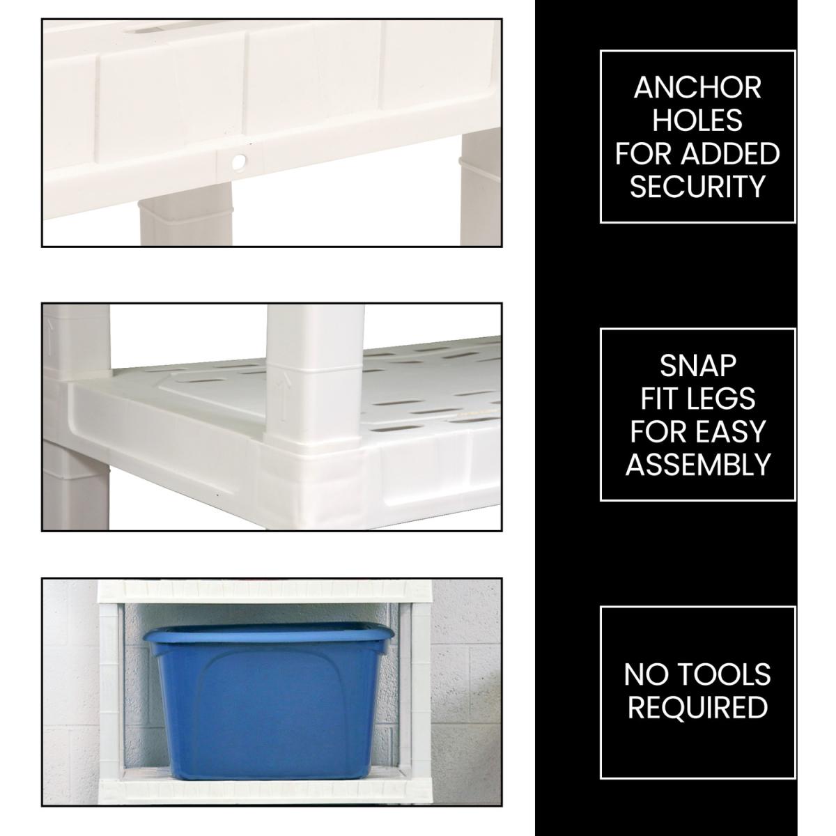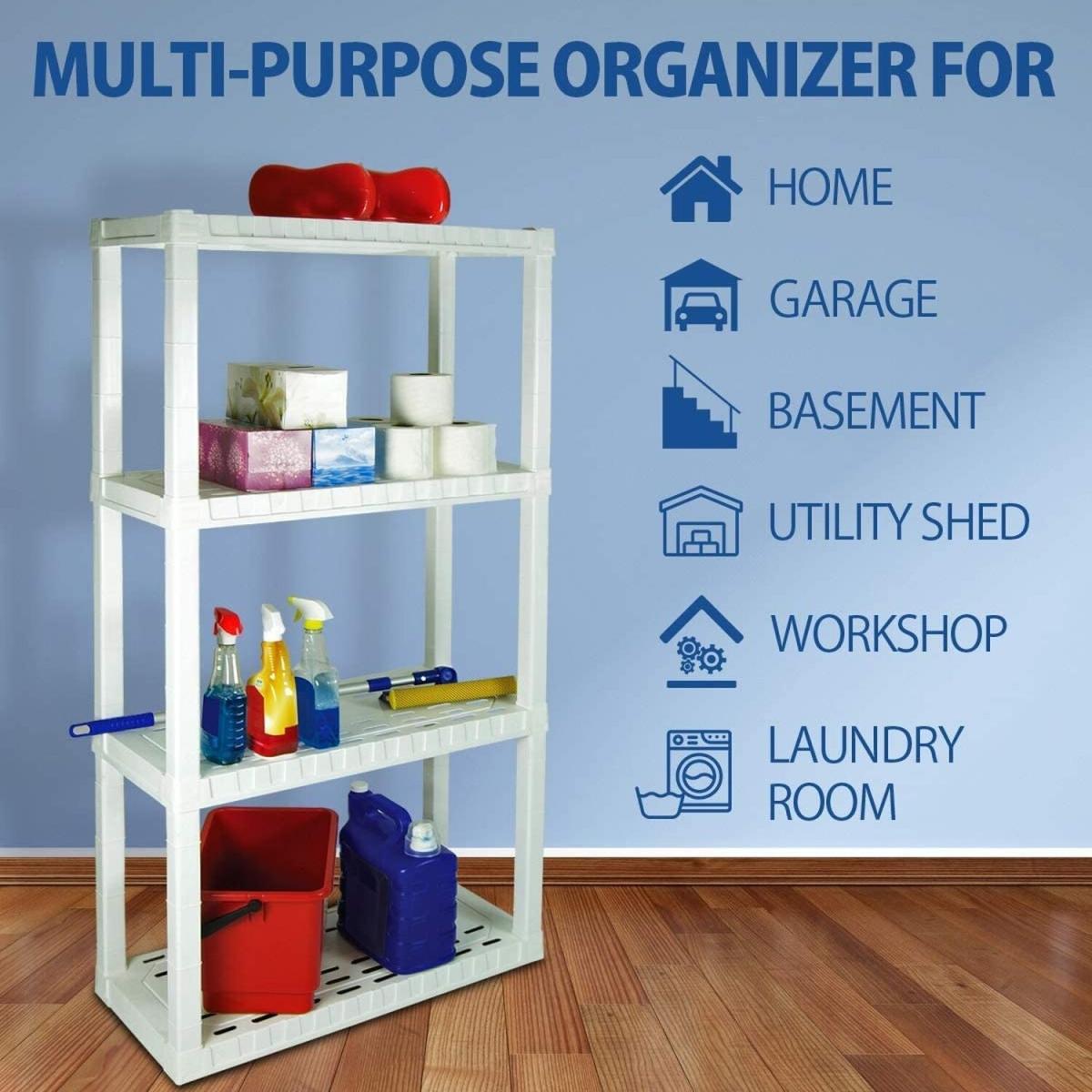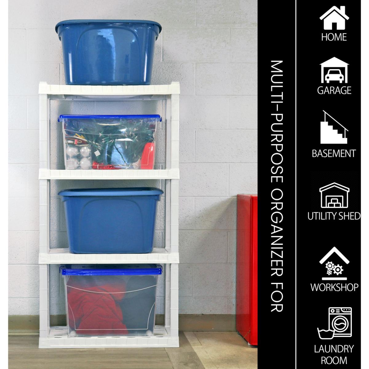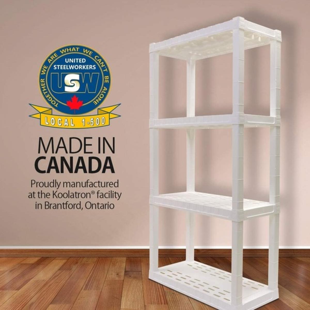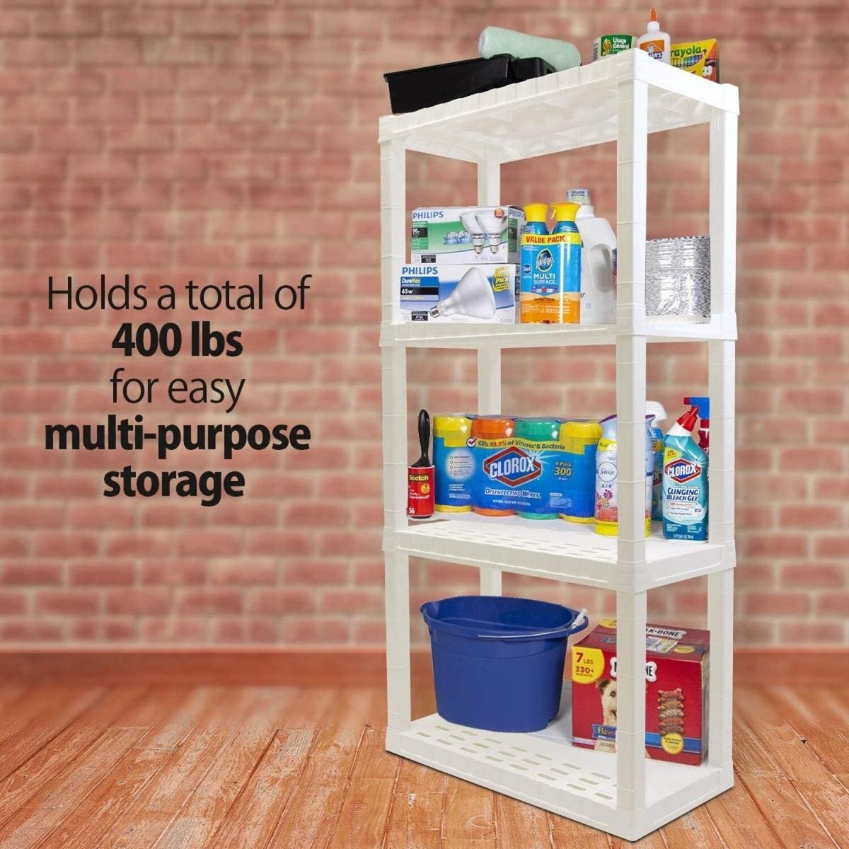 Maximize your storage space with this heavy-duty 4-tier shelving unit, proudly manufactured in North America. With a total 400 lbs storage capacity (evenly distributed), you can easily organize your basement, garage, office, utility shed, and more.