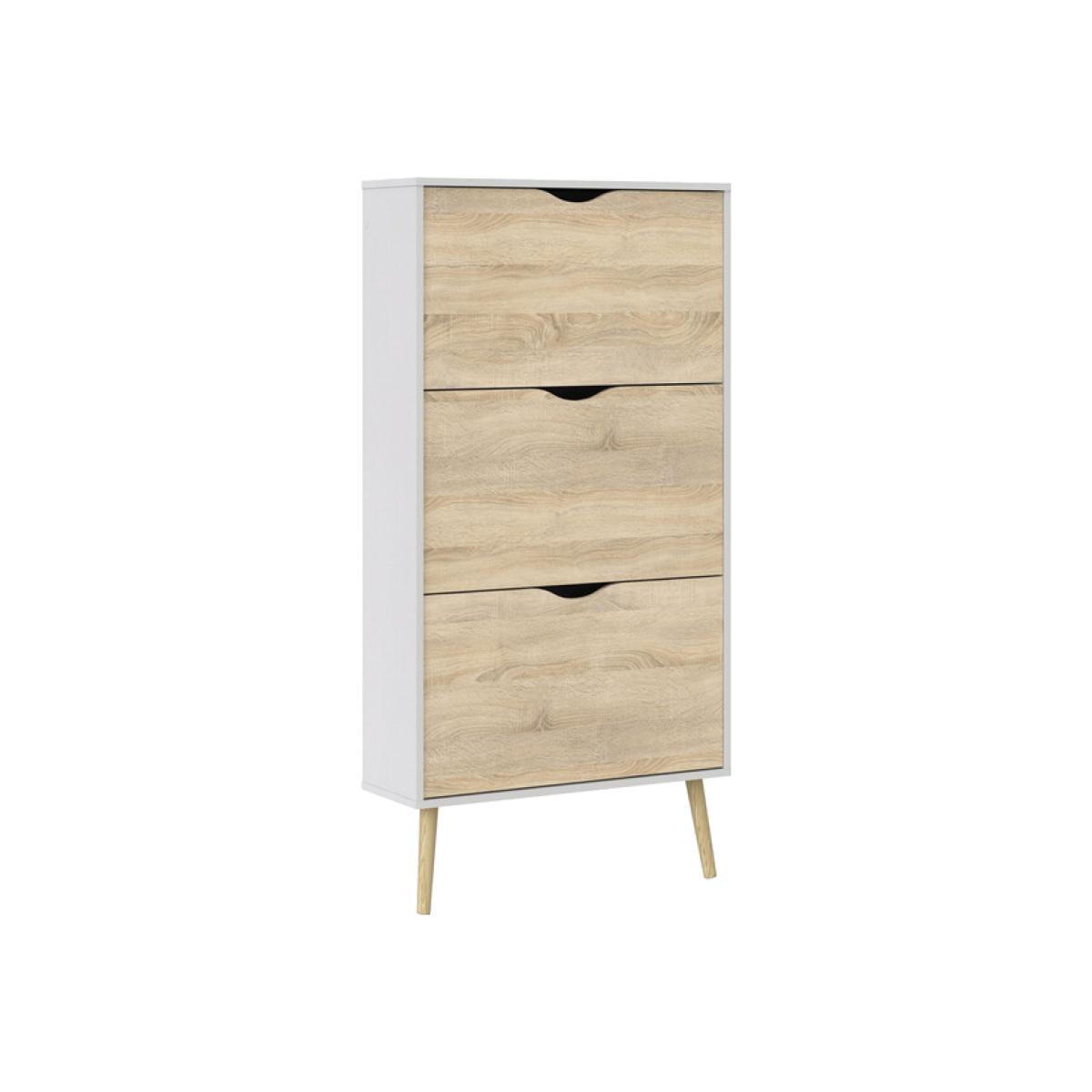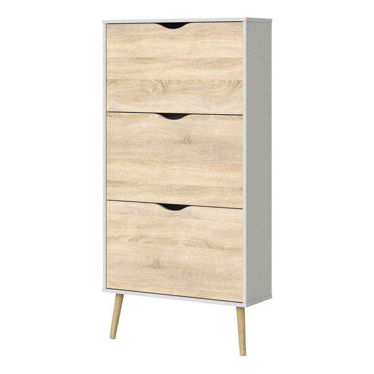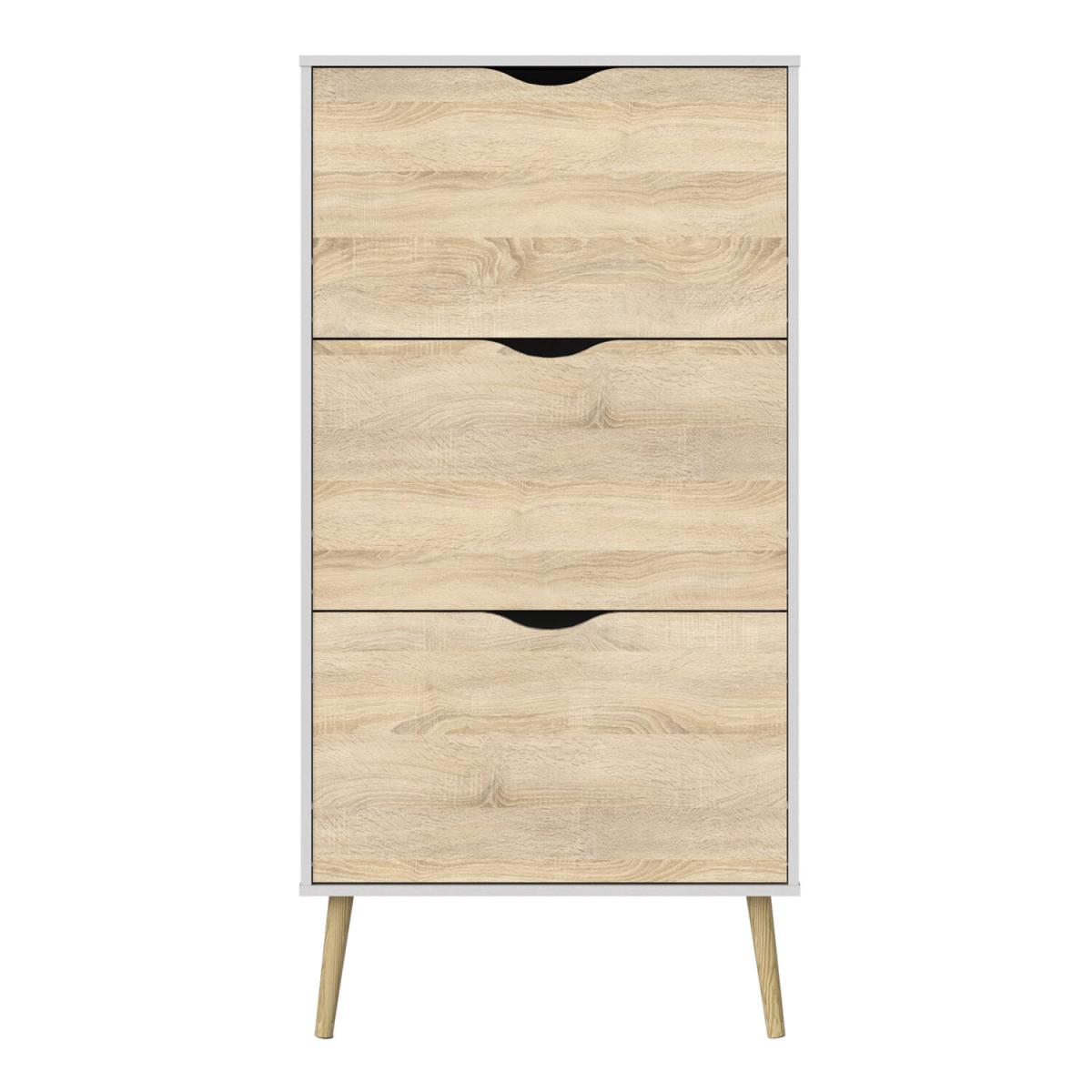 Alluding to a retro-modern charm, the Oslo 3-Drawer Shoe Cabinet has an authentic Scandinavian appeal with real style. Sleek and contemporary design with stylish legs and a beautiful oak-effect finish, this trendy cabinet is a quick and easy way to keep your shoes stored neatly, making it the ideal choice for bedrooms and hallways. Easy to coordinate with your existing decor, it's a must-have.