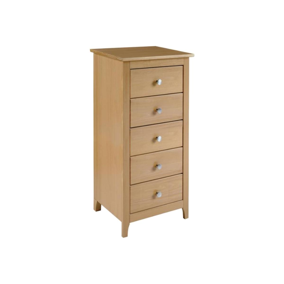 Elevate your space with the timeless appeal of the Oslo 5-Drawer Narrow Chest. Its simple yet sophisticated antique pine design, adorned with sleek silver hardware, embodies rustic charm while exuding an air of refinement. This chest offers ample storage within its five spacious drawers, ensuring your essentials stay organized. Effortless assembly, thanks to its flat-pack convenience, makes it a hassle-free addition to any room. UK Mainland delivery only, between 9am - 9pm (weekdays) the courier will contact you on the day of delivery to offer a time slot. This takes place within 10 working days (Ground floor only). Please also ensure that we have a note of your up-to-date address and contact information, including daytime phone number and email address to be passed to the couriers.