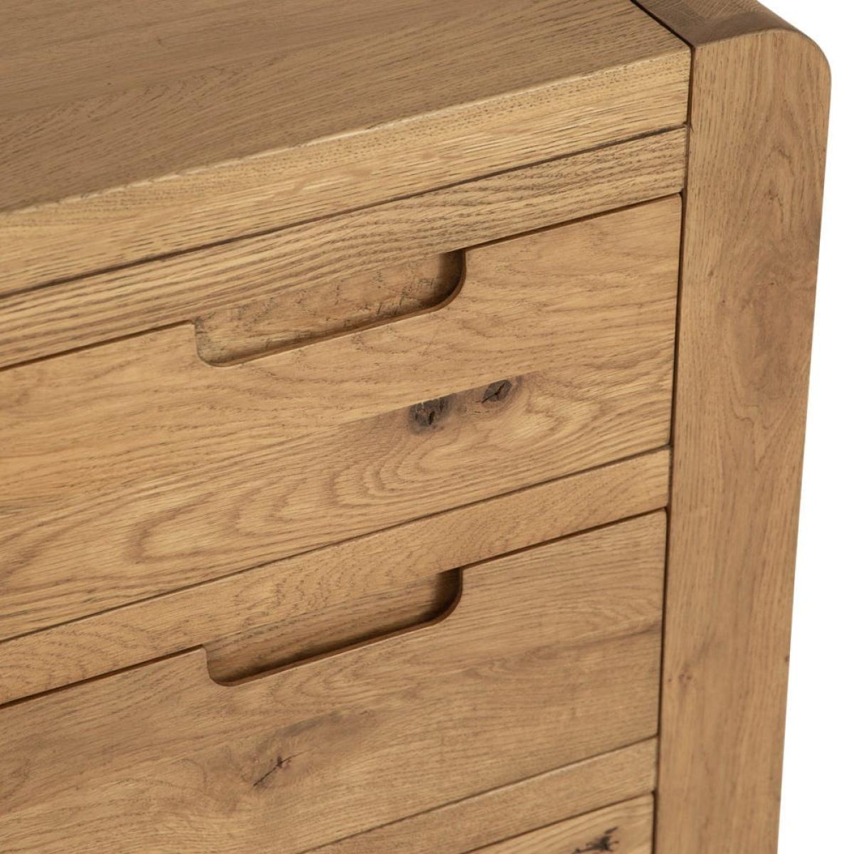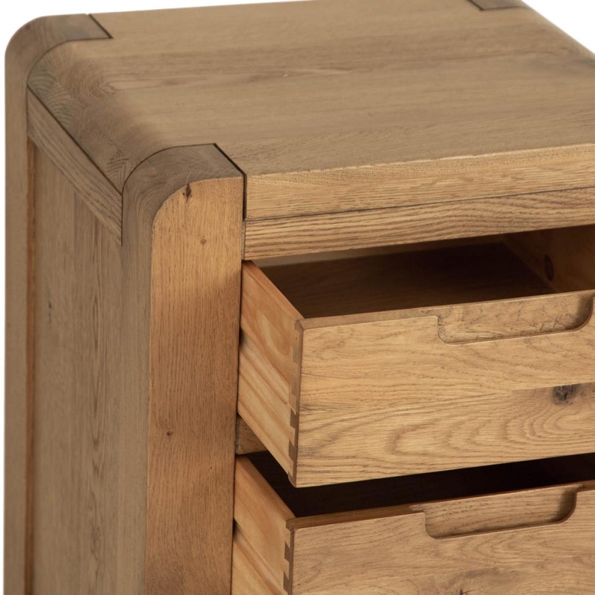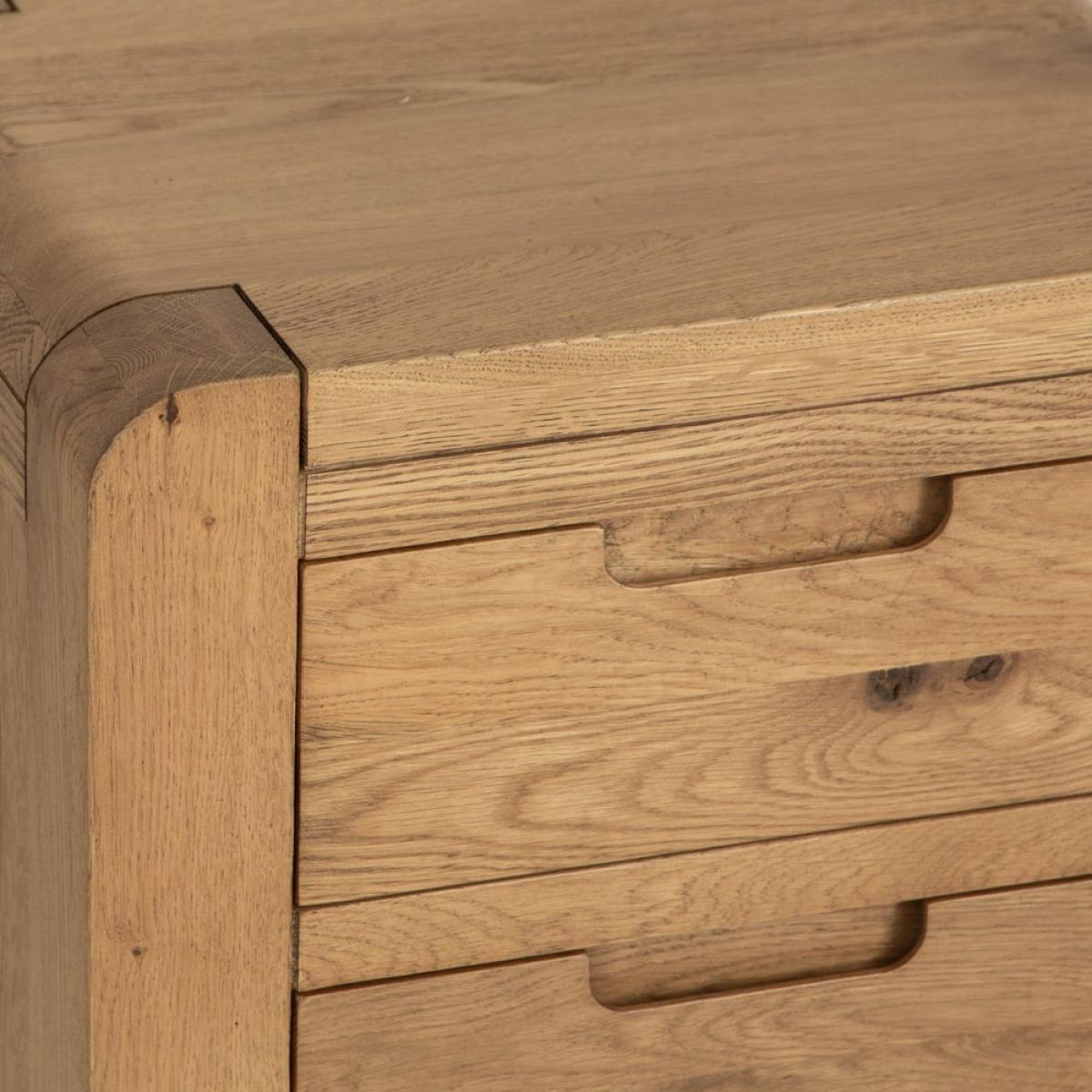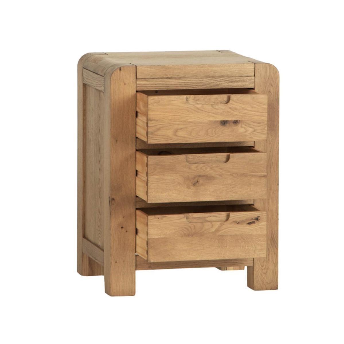 Invite cosy Scandi design into your bedroom with this eye-catching Oslo chunky oak 3-drawer bedside table. This stylish piece features all the homely touches that define our Oslo collection, and the appealing light oak finish will complement any style of bedroom. This table has rounded corners to soften the chunky frame, and the drawers feature inset handles that show off the grain in the oak. Use the top for a lamp and your pile of must-reads, and keep valuables in the spacious drawers. This bedside table comes ready assembled, so you can place it in situ without further ado.
