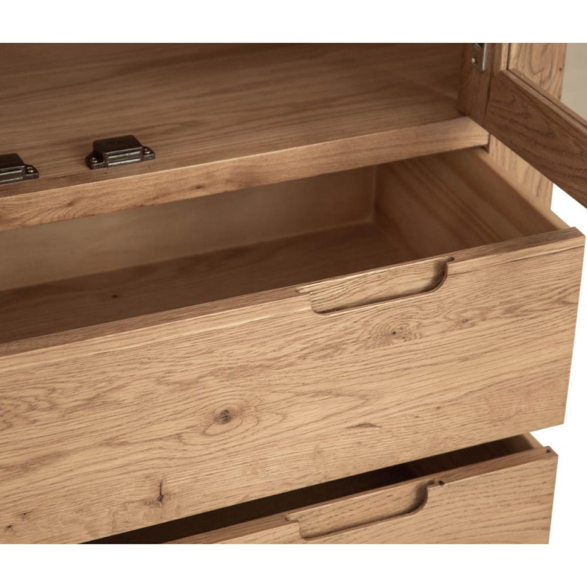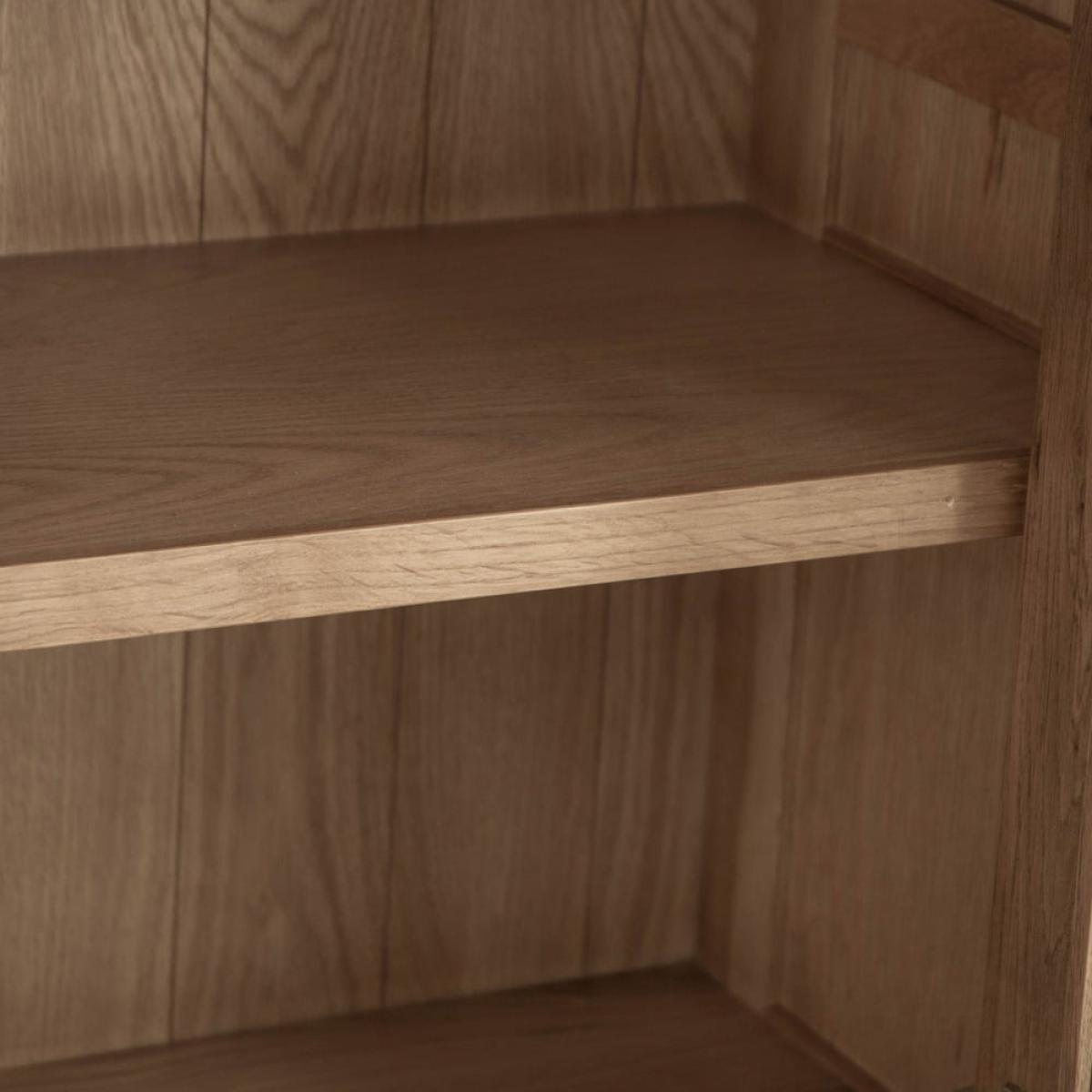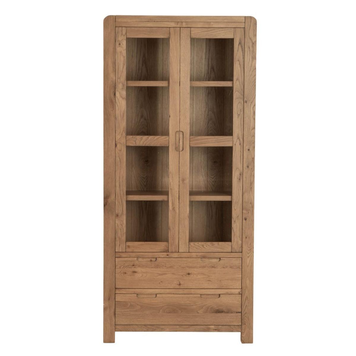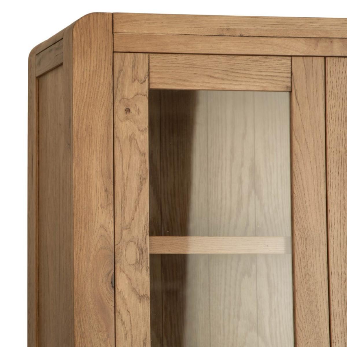 This Oslo chunky oak large display cabinet combines a stocky oak frame with elegant glass doors to show off your favourite tableware in style. There are four shelves for your prettiest plates, cups and glasses, and a pair of large drawers at the base for table linen and placemats. The sturdy golden oak frame showcases the natural features of the wood, while the rounded corners soften the silhouette. This fine balance of styles suits both traditional and modern homes. Keep this display cabinet in your kitchen for additional storage or show it off in your dining area for maximum impact.