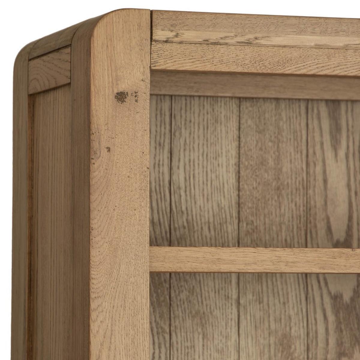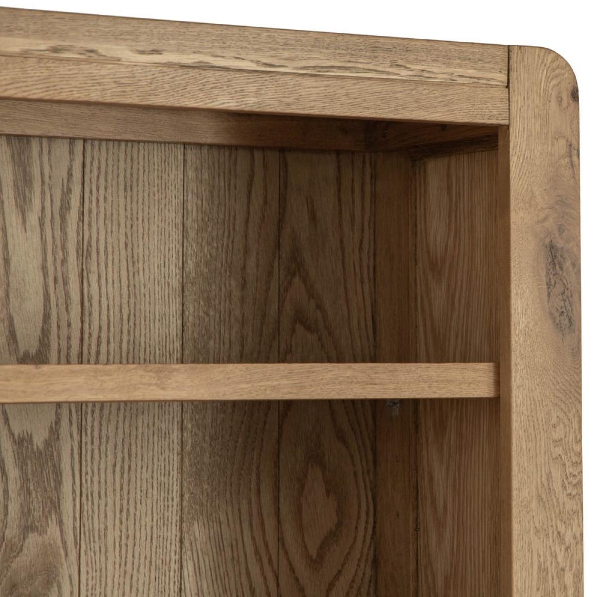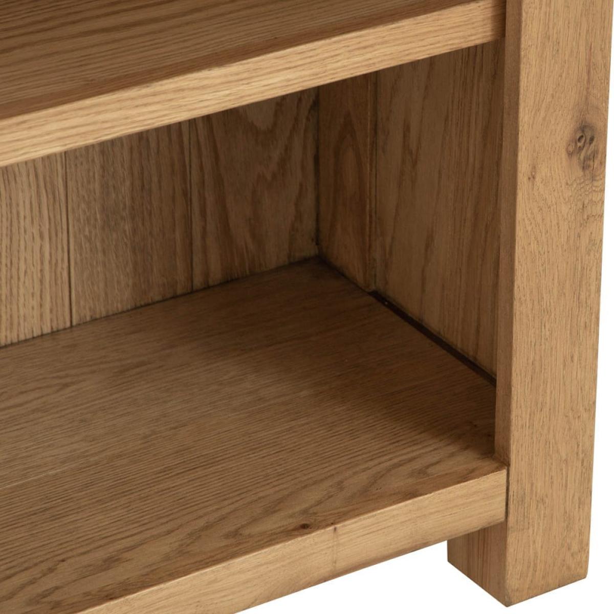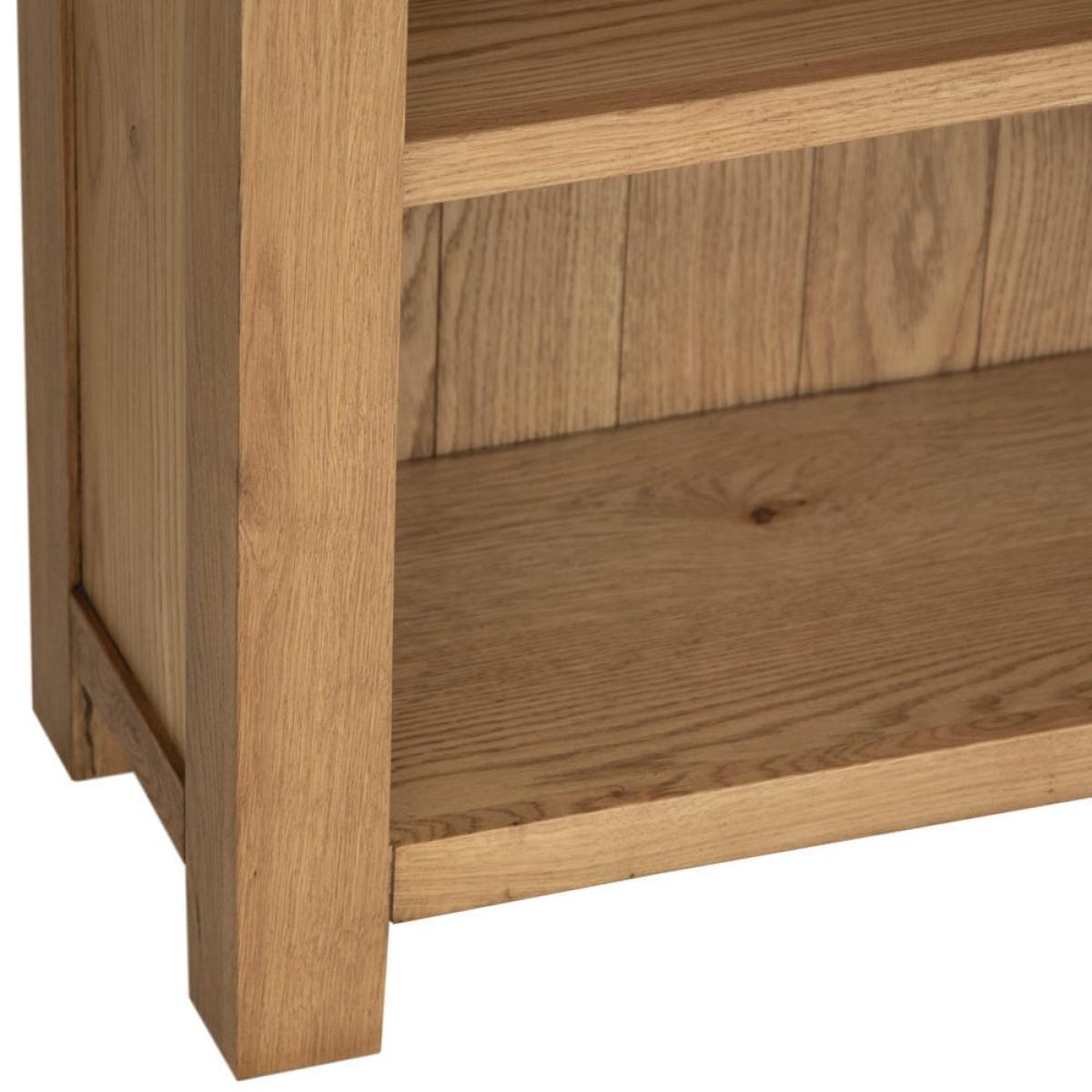 Display your favourite fiction and gain a stylish focal point in any space with this Oslo chunky oak large wide bookcase. Our golden oak sits elegantly against both light and dark backdrops, and the stocky frame and exaggerated grain lend a rustic feel to your living room or bedroom. This tall, slender unit contains six shelves of varying heights, so you can use it to display large ornaments, vases and framed photos as well as your books. The best part? It needs no assembly, so all you need to do is decide how to style it.