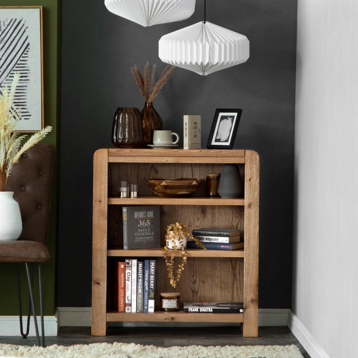 Stow your books in style with our Oslo chunky oak low bookcase. This compact piece nestles seamlessly into any corner, and our golden oak suits both modern and traditional home decor. The smooth rounded corners, a hallmark of our Oslo range, balance the chunky square legs for classic Scandi charm. Our exaggerated grain showcases the original features of the wood to lend this piece an artisan finish. Use this bookcase for all your favourite novels, anthologies and memoirs, or for framed pics and decorative items. Alternatively, keep it in the kids’ bedroom for treasured picture books and soft toys.