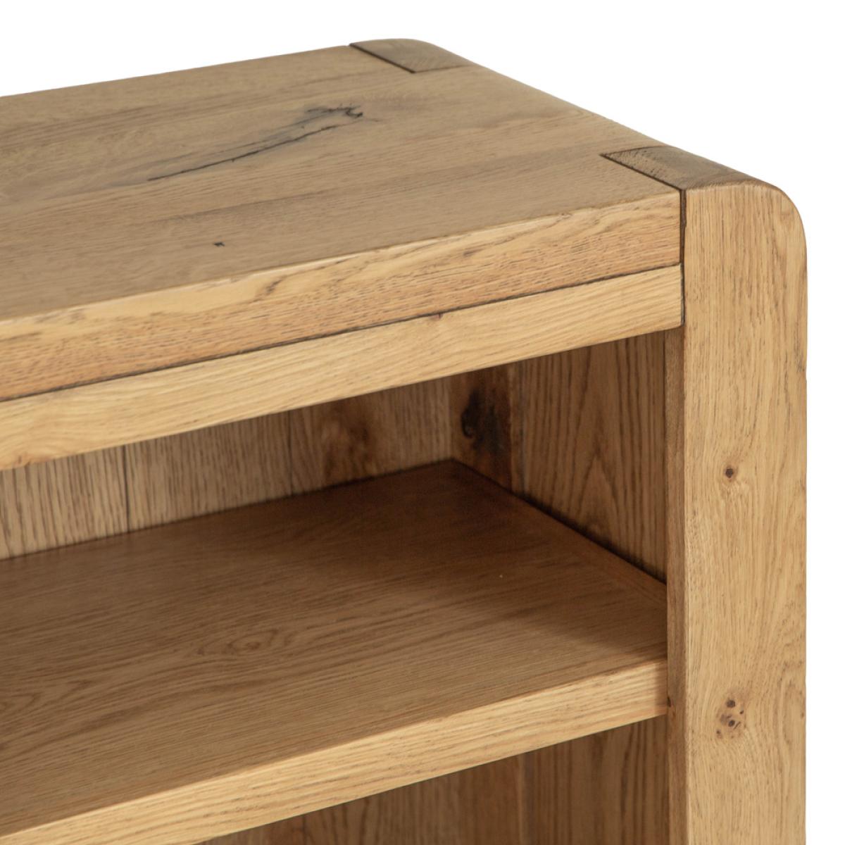 Nothing makes the home feel cosy and lived in like a set of Book Shelves fill to bursting with family photos and well-thumbed page turners. This is the little addition to the home that instantly makes you at ease, and shows your guests what matters to you most. The Oslo Oak Coffee Table With Shelf combines functionality with style to create a piece that welcomes you in to take a closer look by catching the eye with its large rounded corners. As you come closer you see an explosion of colour and shade in the form of the intricate grain structure of the oak, not to mention the deep bursts of colour of the knots.