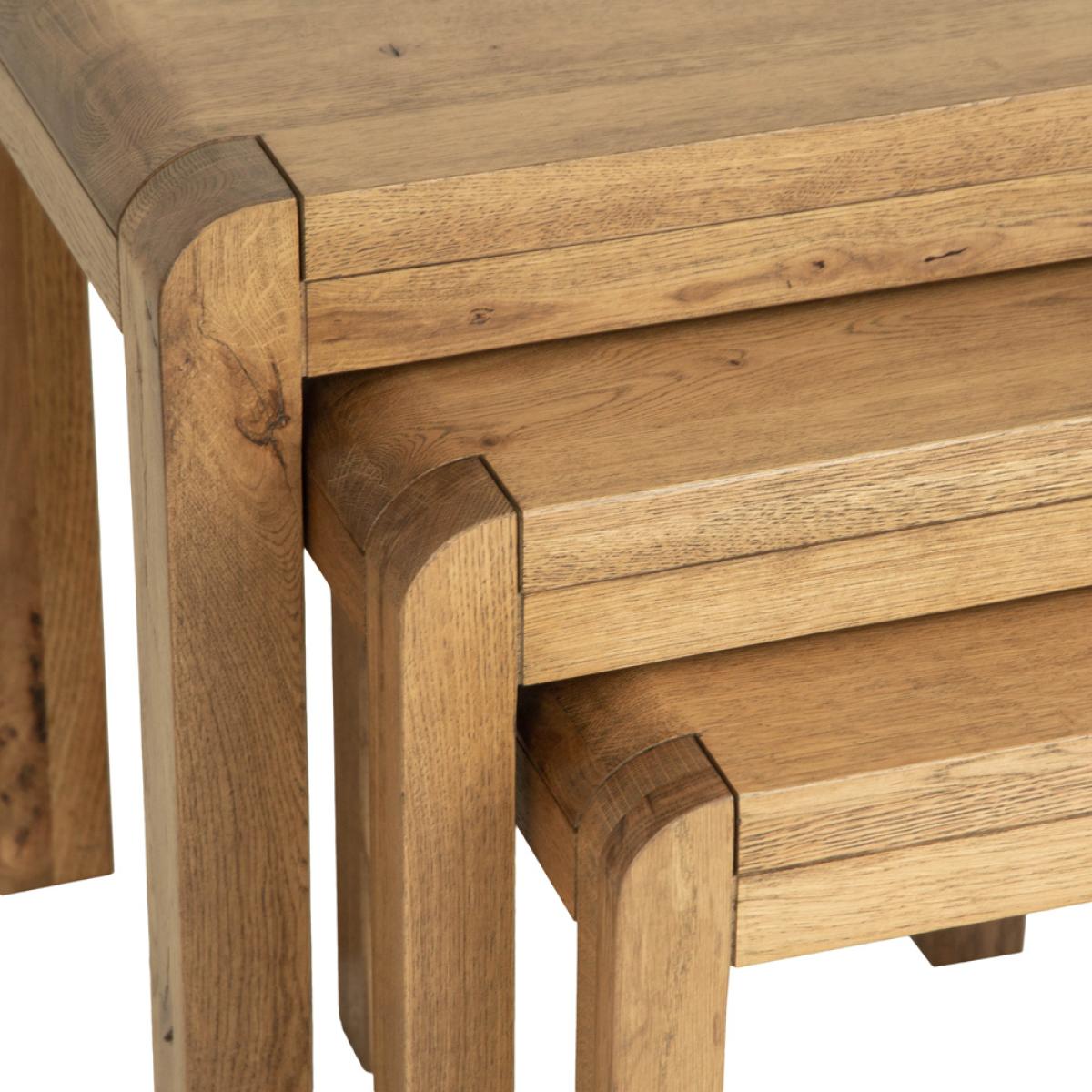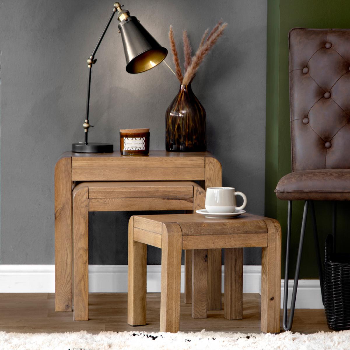 Taking the time to add those little homely touches around the place is what makes all the difference. That's the thinking behind the Oslo Oak Nest of Tables, and it's a choice you're going to love to admire in your home for years to come. Thick oak gives it a rustic meets Scandinavian quality, whilst the signature deep grain is what sets the tone for the rest of the room. It's a chance to add a Set of Side Tables that will instantly catch the eye thanks to their pronounced corners, and it's an opportunity no home can afford to miss. All you need to do now is find a few ornaments to dress your new Side Tables.