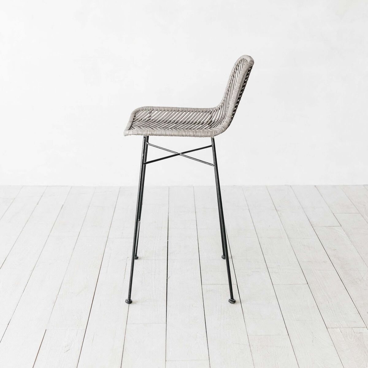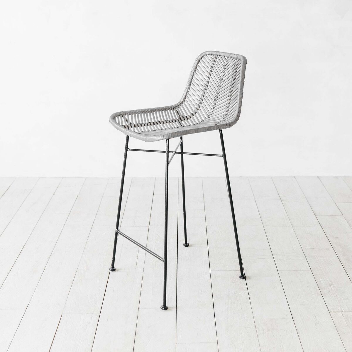 A combination of classic and contemporary design, this functional piece marries traditional woven rattan materials with a modern Scandi look. Supported by a solid, black metal frame, this barstool truly combines functionality with style.