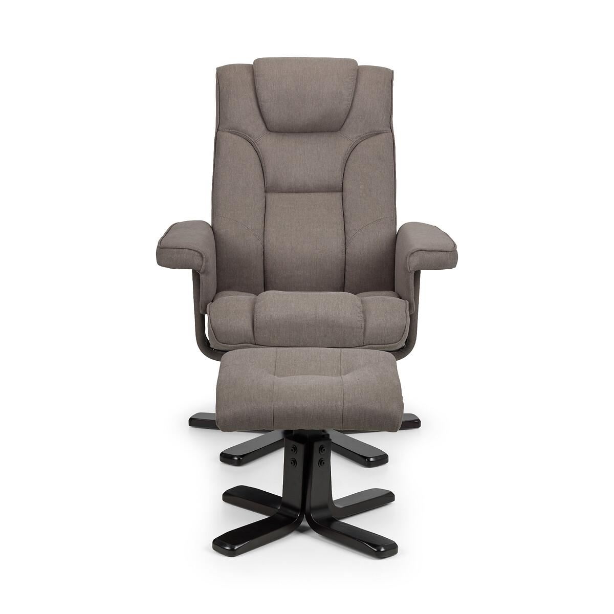 The Oslo reclining swivel chair and stool is upholstered in a grey linen fabric with a black colour laminated base. This chairs offers the ultimate in complete sitting comfort and relaxation. Product details• Upholstered in faux leather• Walnut effect base• Ergonomic design• Foam fillings• Medium comfort• Full assembly required. Product Composition - 25% Wood, 25% Foam, 25% Fabric, 25% Metal. Product Dimensions - 82 cm x 83 cm x 105 cm , Weight - 22 KGPackage Dimensions - 88 cm x 65 cm x 38 cm, Weight -24.3 KGThis product will be dispatched by one of our trusted suppliers. You’ll be contacted by their selected courier about your delivery. Please note: this product cannot be delivered to all Offshore Islands, Northern Ireland or Republic of Ireland. JULIA01
