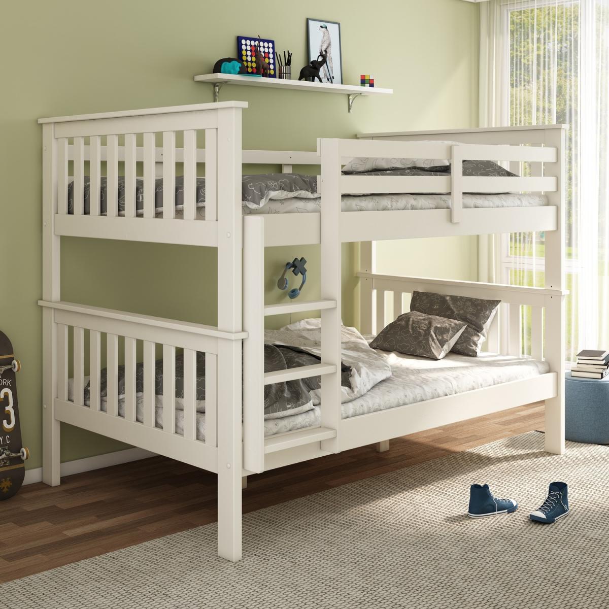 The Oslo quadruple bunk bed brings forward a new concept of a double bunk bed. With a Small Double top and bottom, this bed can easily accommodate 4 people. The bunk bed frame can easily be split and used as two separate Small Double beds. Can also be purchased with two Small Double mattresses. Both mattresses are supported by the strong wooden slatted base for extra comfort. The bed comes with an adjustable (left or right) ladder which makes it easier to climb into the top bunk. This bed is constructed using high quality Pine wood and has a very sturdy build. The contemporary finish and gapped design make it suitable for any bedroom. This bed comes flat packed for ease of delivery and assembly. It is a perfect option for saving space and it is ideal for both adults and children. Complies with the requirements of UK bunk beds (Entrapment Hazards) (Safety Regulations 1987) and the European Standards (EN747-1). Choose from our range of special Low Profile mattresses which are manufactured to fit perfectly in these types of beds without compromising on fillings.