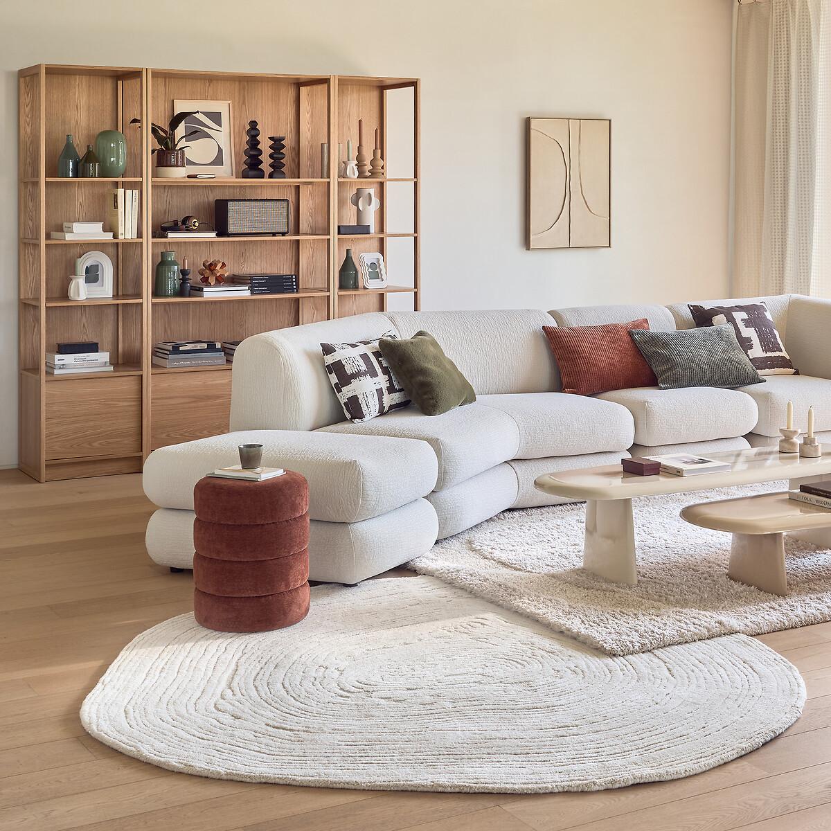 Organic shape reminiscent of a pebble. Textured and unstructured lines. The Ostia handmade wool rug is a natural addition to any living space, adding beauty and character. Product Details • 100% wool • 3400g/m2 • Thickness: 2.3cm • Weaving type: Handmade • Underfloor heating compatible: Yes • Interior Use: Yes • For outdoor use: No. Quality Info • Wool is a warm and comfortable fibre. A wool rug is also an excellent thermal and sound insulator. • Hand-braided, each piece is unique and may have small irregularities which make it authentic.. Colours and dimensions may vary slightly. Care advice • Once unrolled, you must wait a few days for the carpet to return to its initial shape.. • To keep the edges flat, roll your mat in the opposite direction. Leave it like this for an hour then put it back flat and place a heavy object on it for 2 days. • New, the carpet may give off an odour which dissipates over time. Remember to regularly ventilate your room to reduce it. • To preserve its appearance, rotate your rug regularly in one direction or the other to minimise localised wear in the same places (due to successive passages), and loss of colour due to regular light. Care Advice • Some materials are very fibrous (like wool) and you can actually observe pilling in the first weeks of use. : this is normal because the carpet "bursts" by rejecting its excess fibres. Remove lint as much as possible by hand and do not use the vacuum cleaner in brushing mode as this will pull the fibres and tear them out.. The pilling will improve over time. • For maintenance, we advise you to vacuum it very little the first month and then to vacuum it without rubbing too much always without using the brush. • Compatible with robot vacuum cleaners: No • Remove stains immediately with a clean, damp cloth • Dry clean recommended. Dimensions • Ø160cm • Ø200cm • OEKO-TEX® Standard 100. Standard 100 certification by OEKO-TEX® tests textile products for harmful substances via an independent, international label.